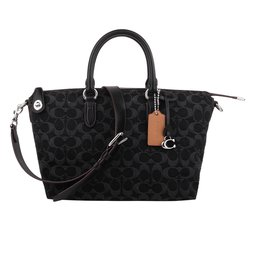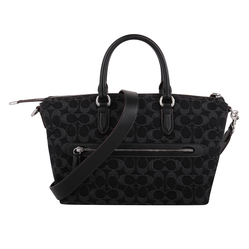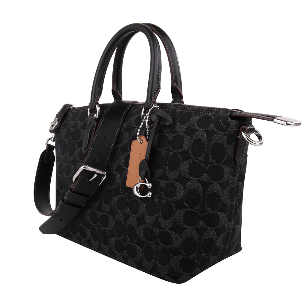 COACH單寧織紋布手提/斜背兩用包(小)_黑色