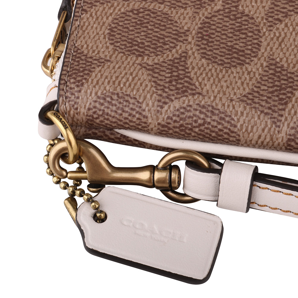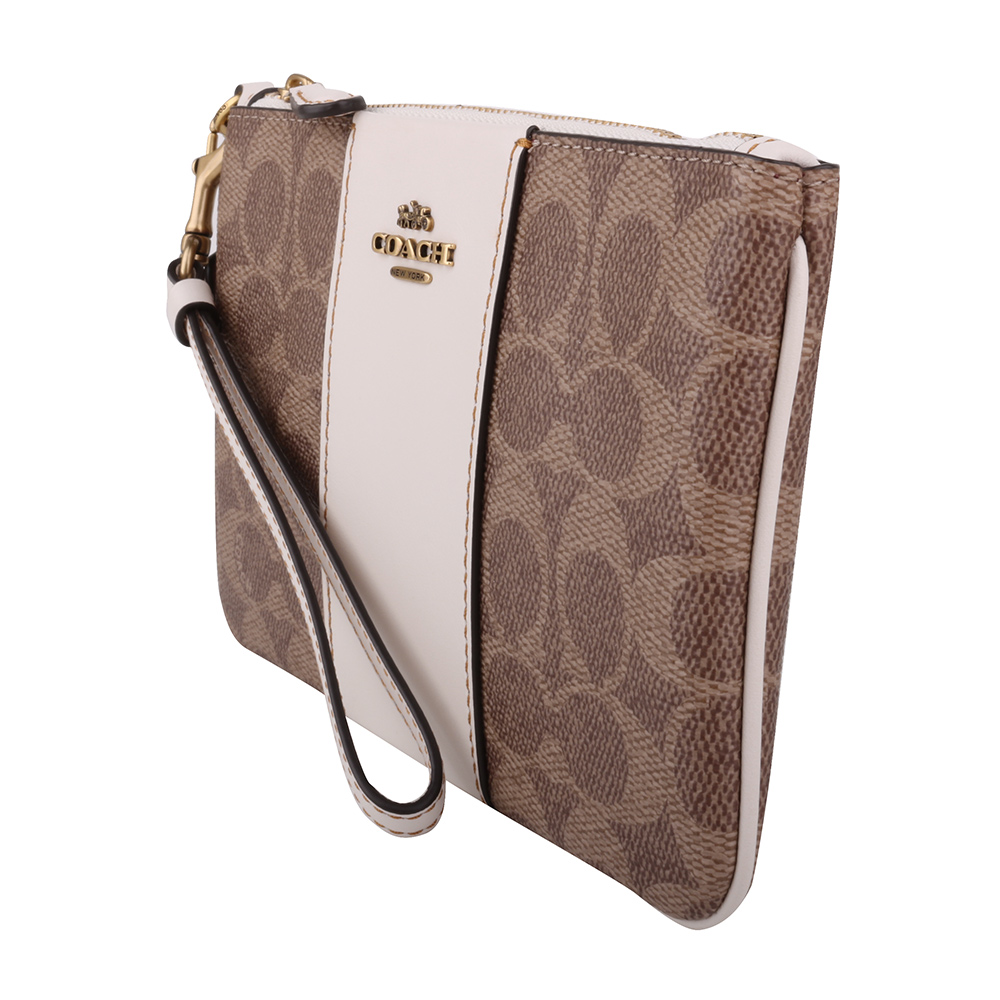 Home - COACH - COACH-金馬車白條槓防刮拚色大手拿包(深卡其X白)