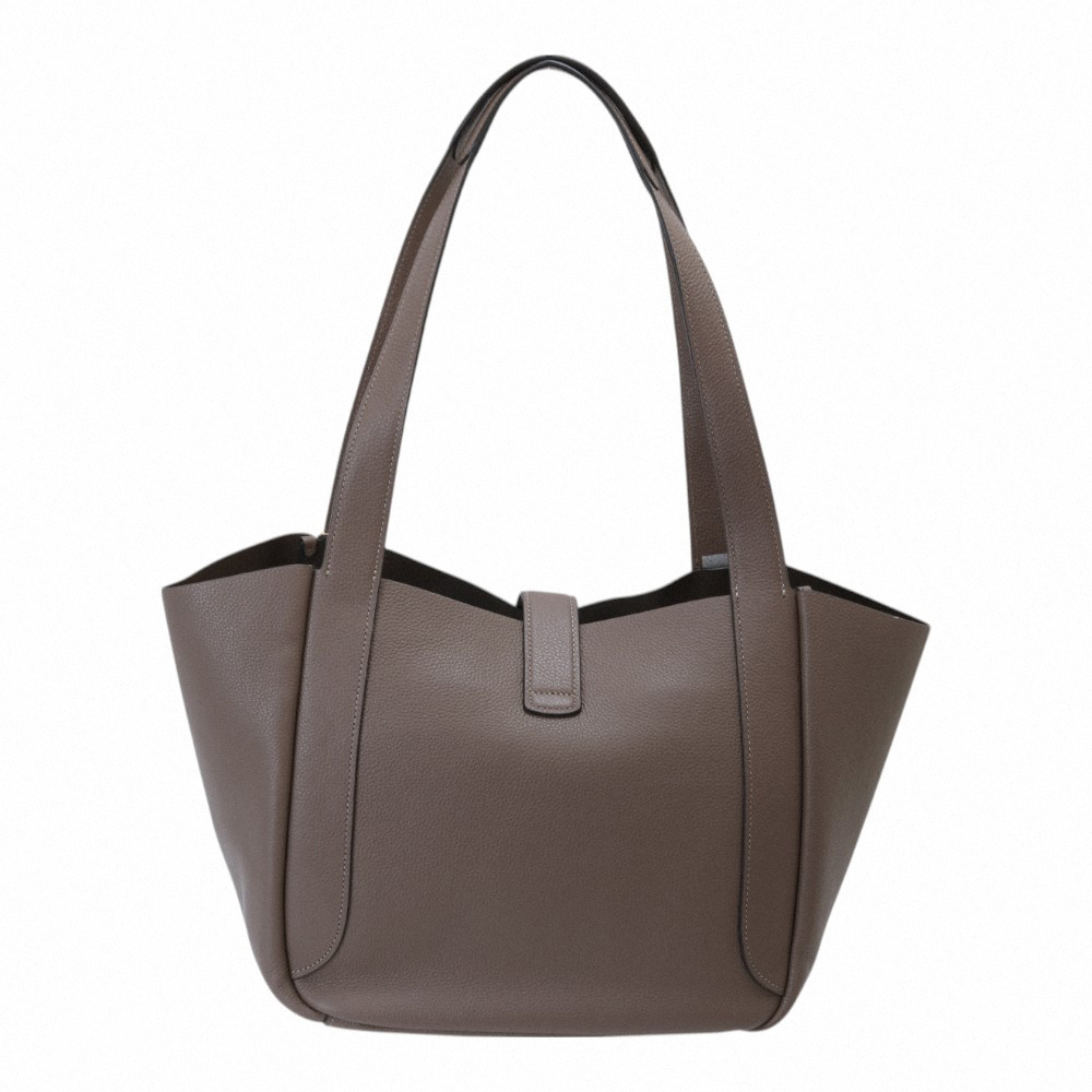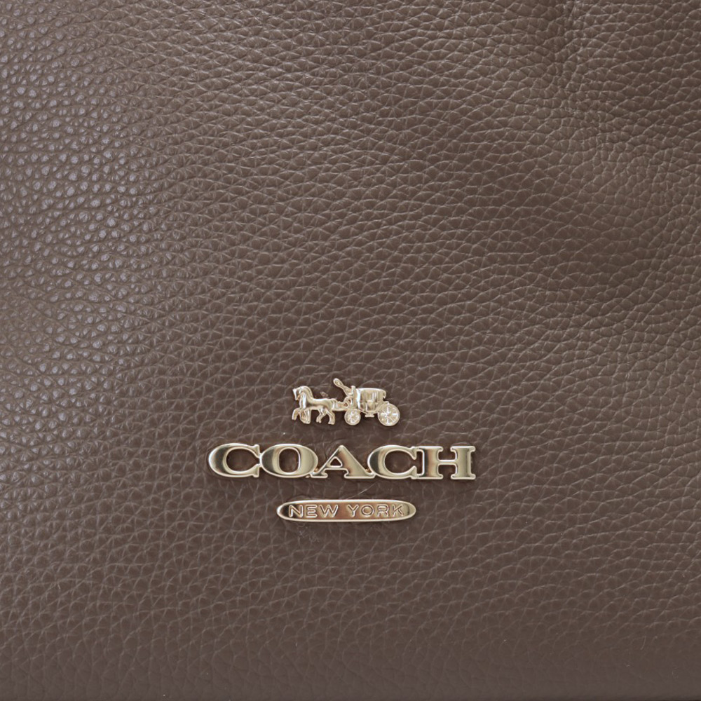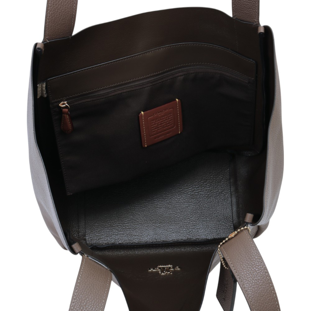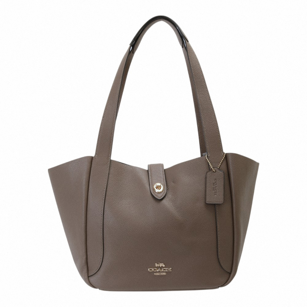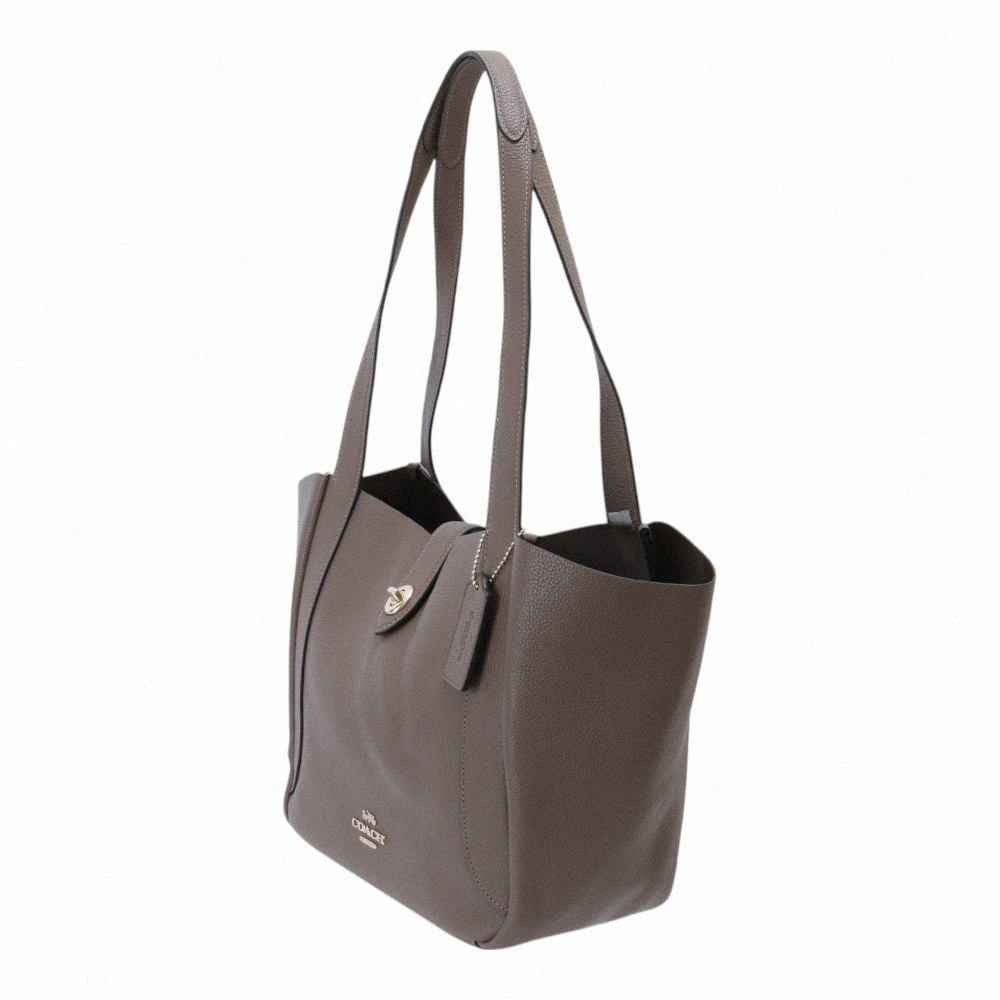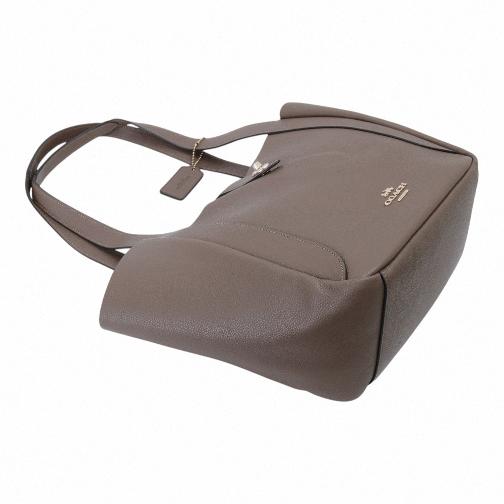 COACH 扭鎖釦皮革手提托特包(可可咖)中
