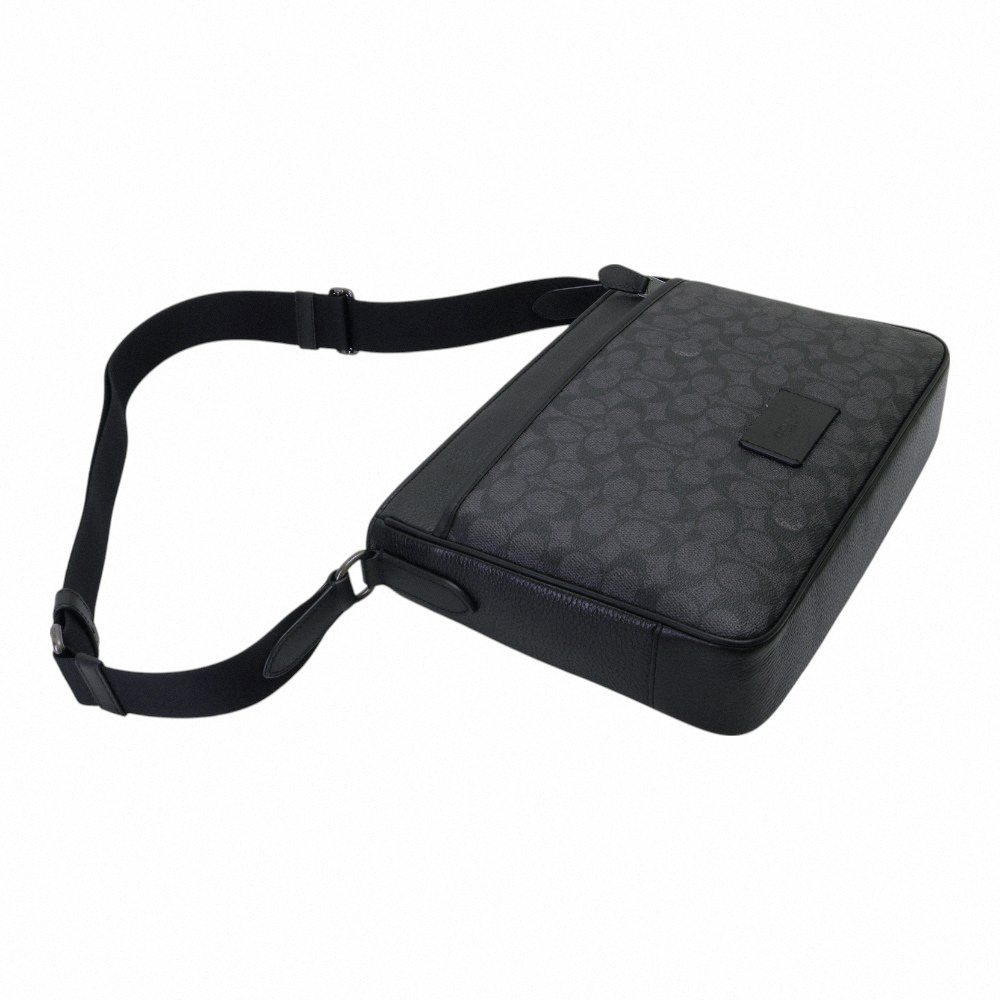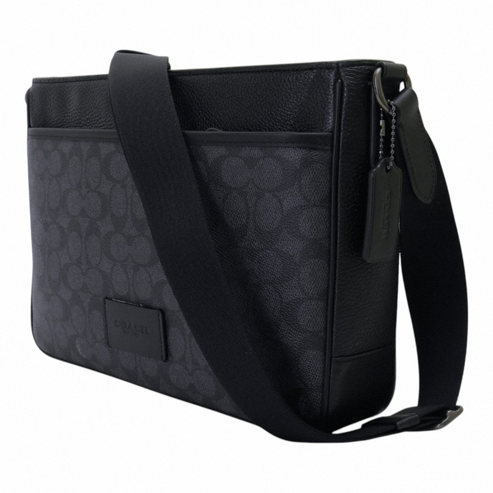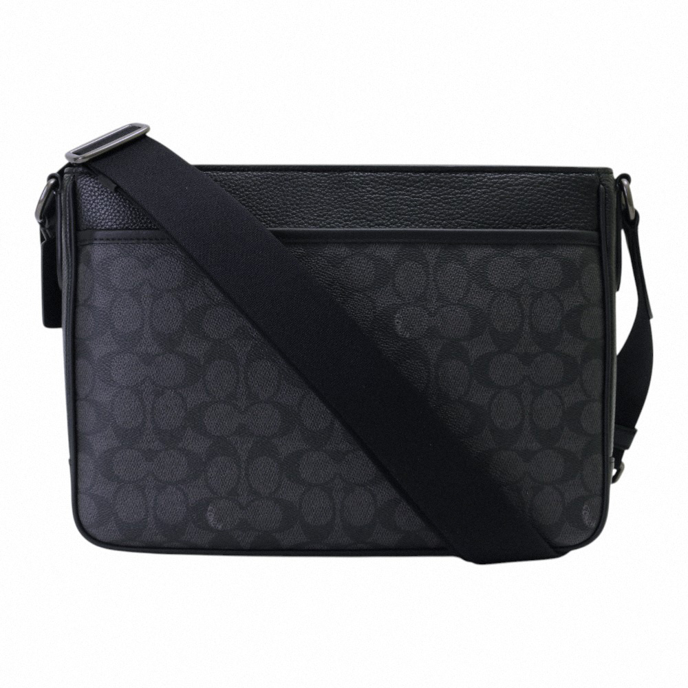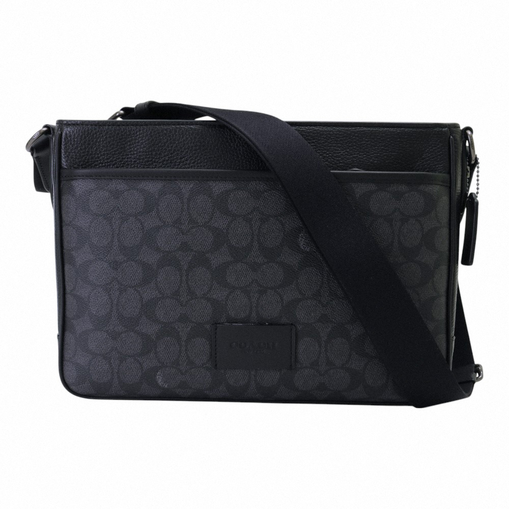 COACH 防刮拼接皮革方型斜背包(黑灰色)