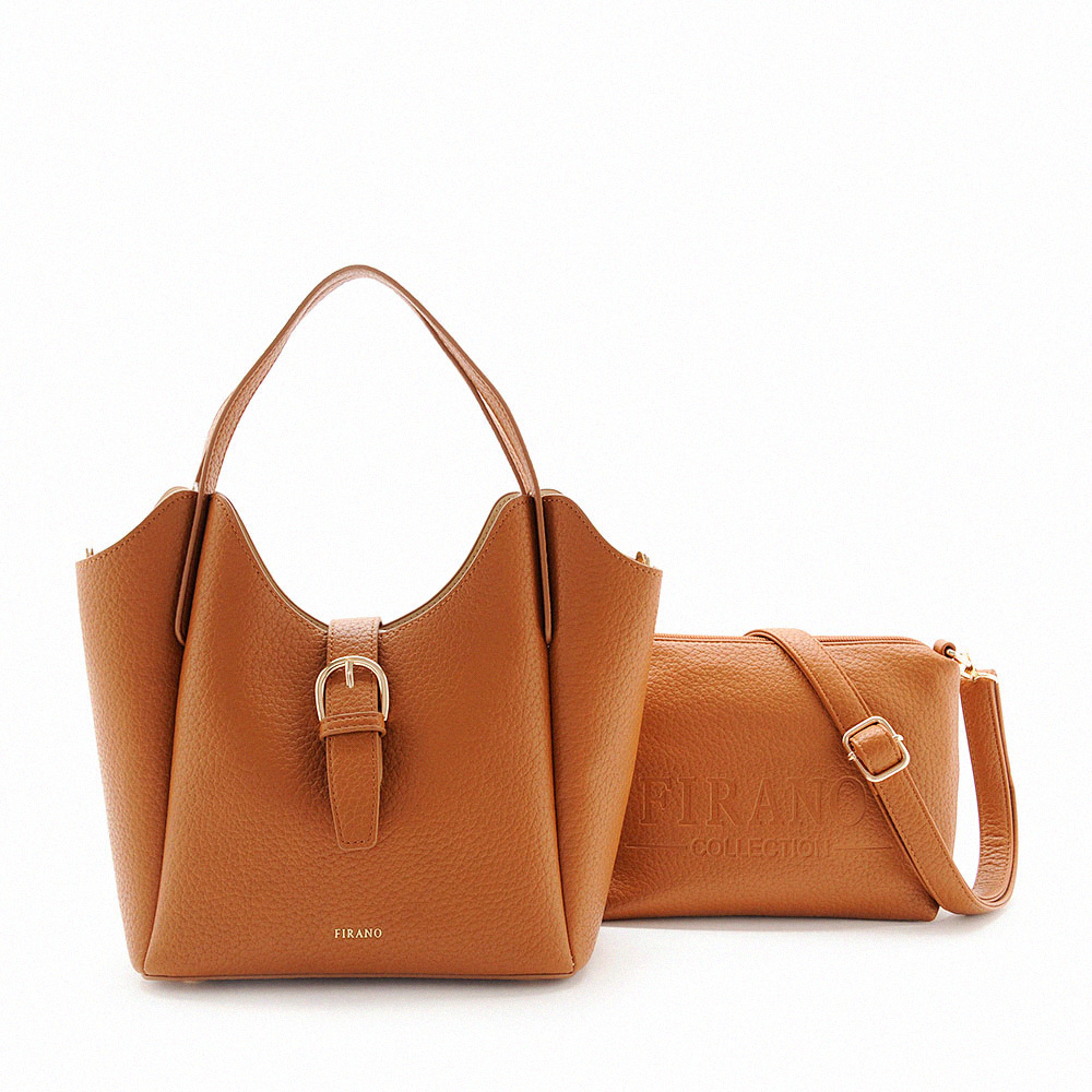 FIRANO 皮帶翻蓋手提包和單肩包組(駱駝色)