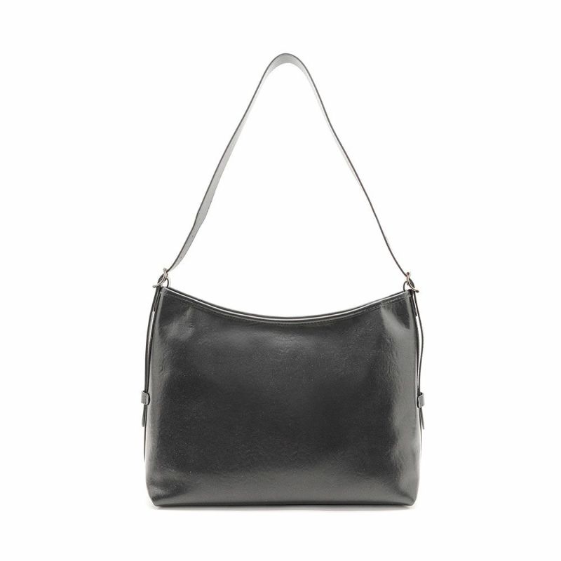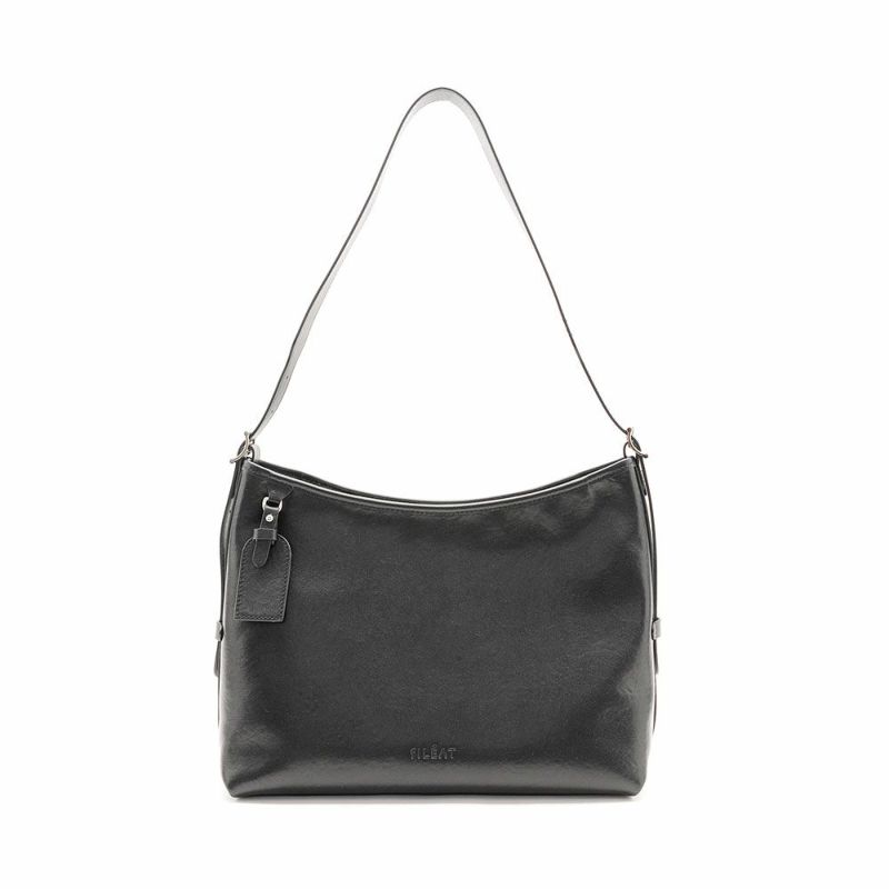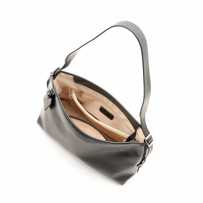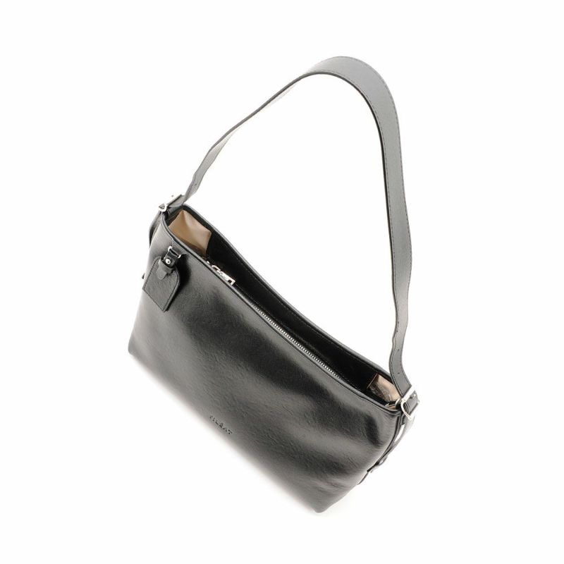 FIRANO 皮革標綁帶真皮革側肩包(黑色)