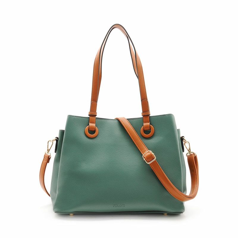 Home - FIRANO - FIRANO 素面皮革手提/斜背兩用包(鮮綠x駝提把)