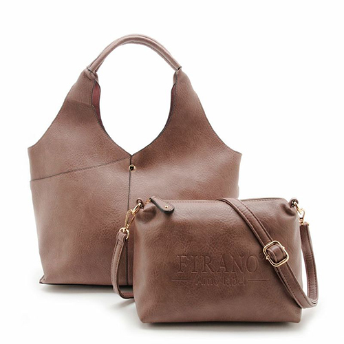 FIRANO 皮革手提背心包&斜背包套組(深粉)