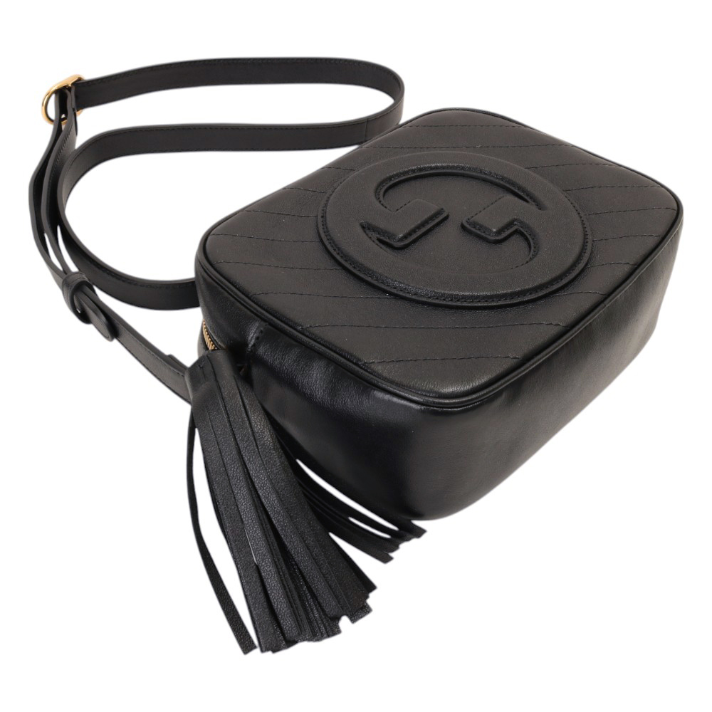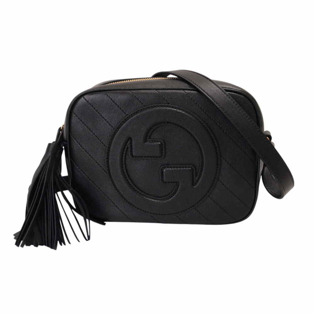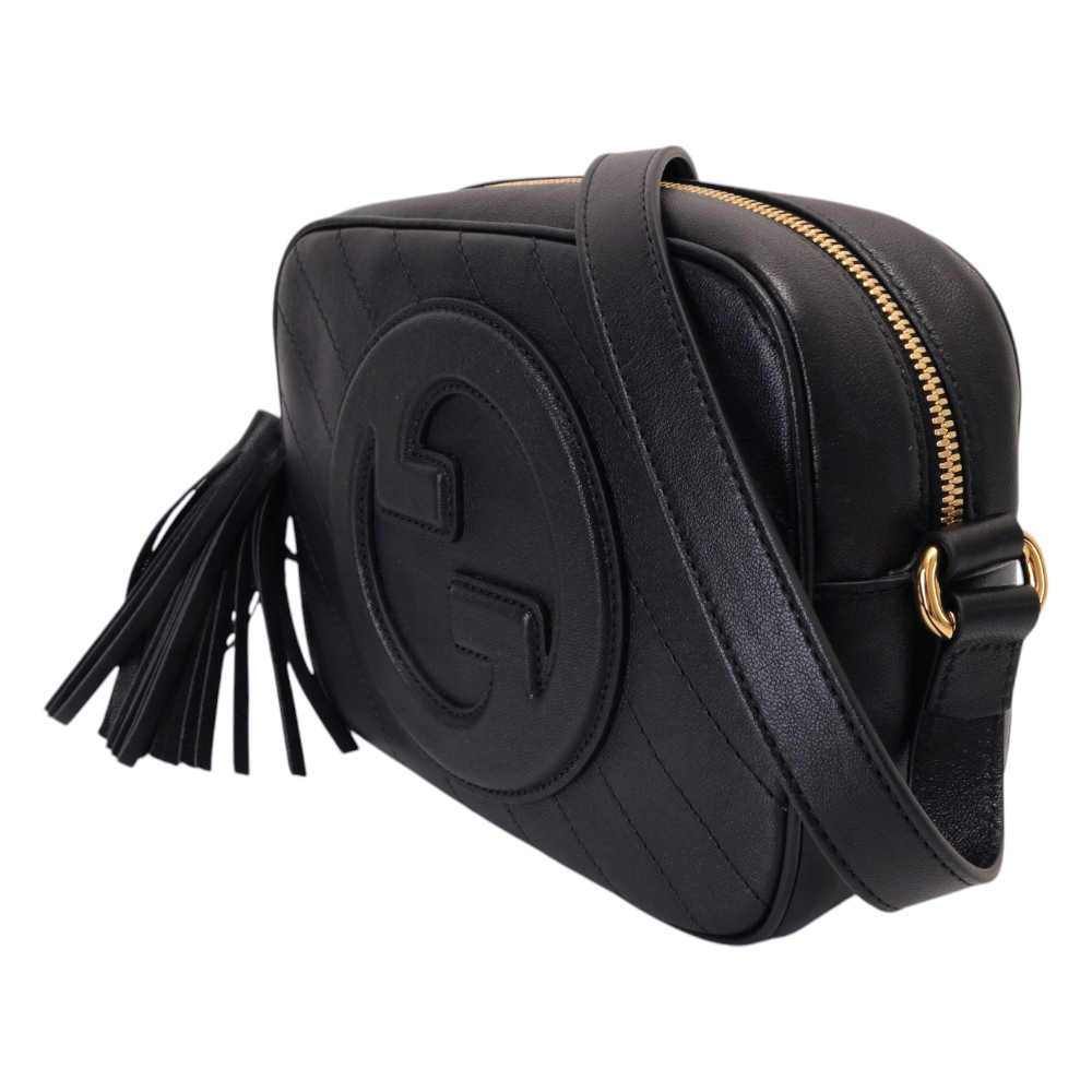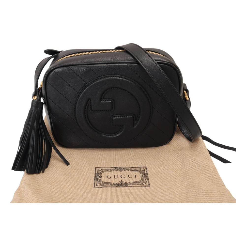 GUCCI-立體雙G 牛皮革斜背相機包(黑)
