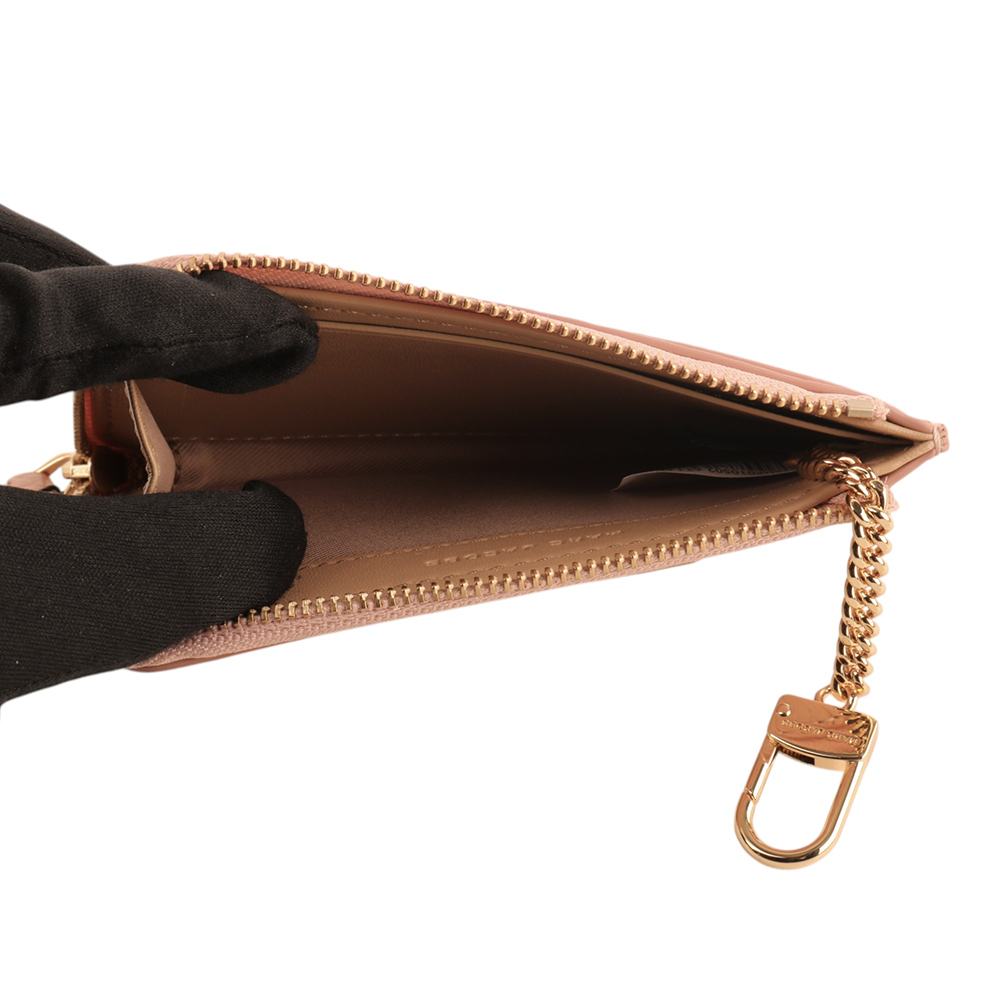 MARC JACOBS-荔枝紋拉鍊鎖圈卡夾零錢包/淺粉