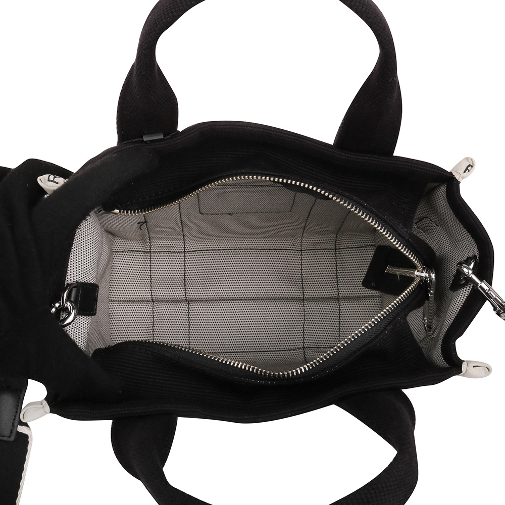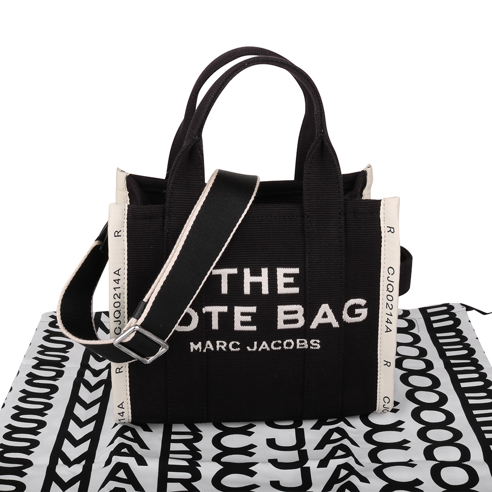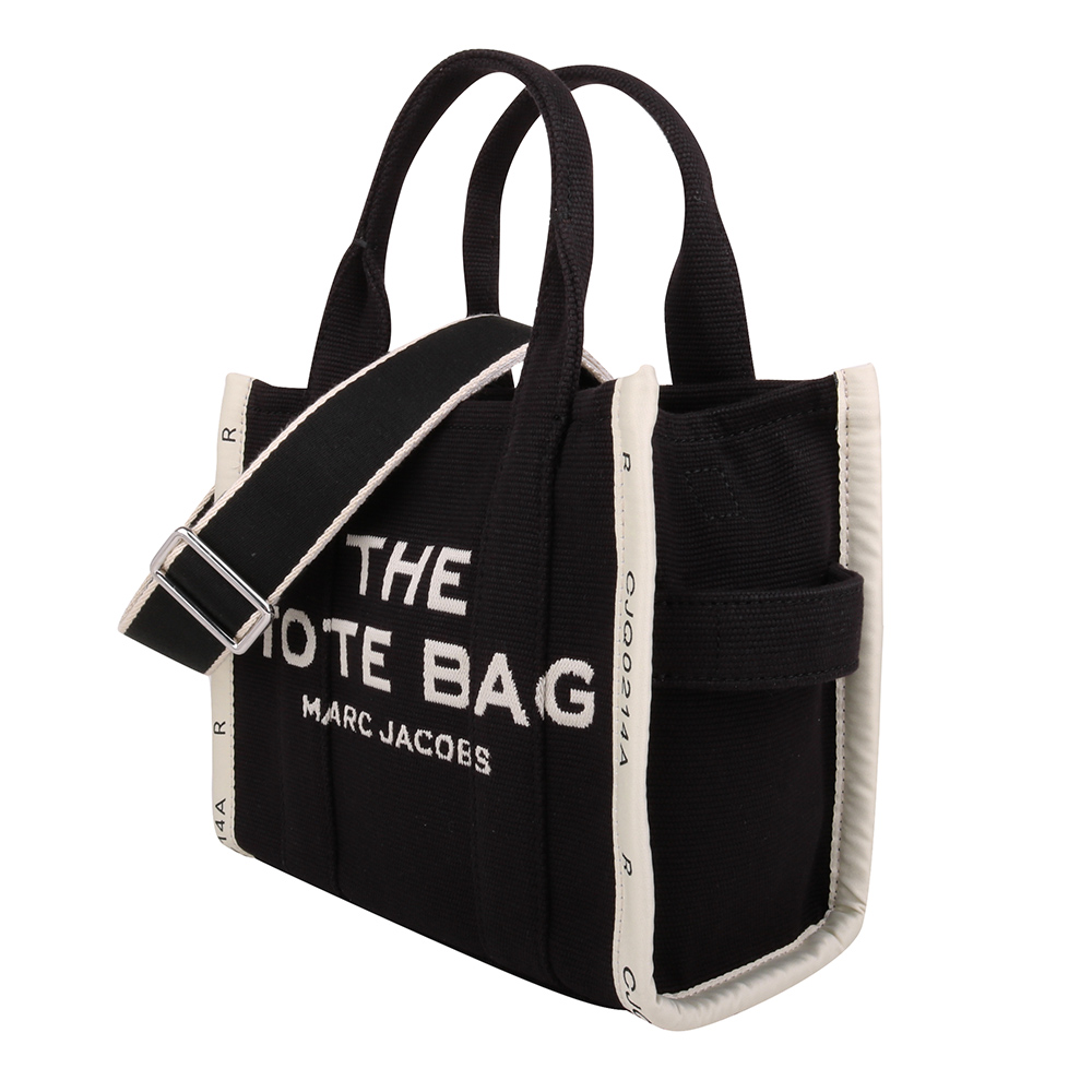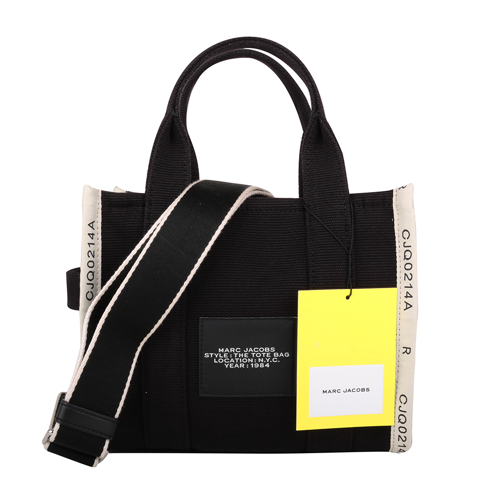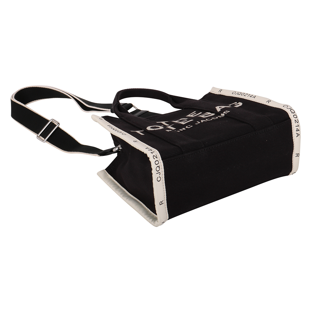 MARC JACOBS TRAVELER白標字白飾邊帆布兩用托特包/黑(小款)