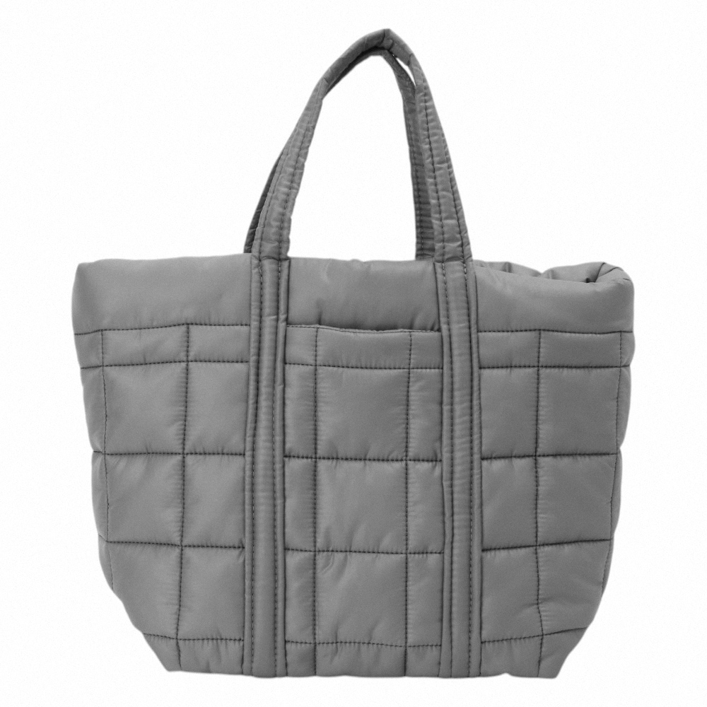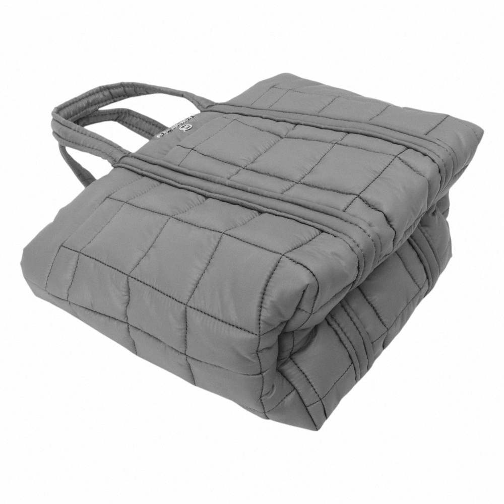 MICHAEL KORS-縫線格紋鋪棉超輕尼龍手提托特包(淺灰)