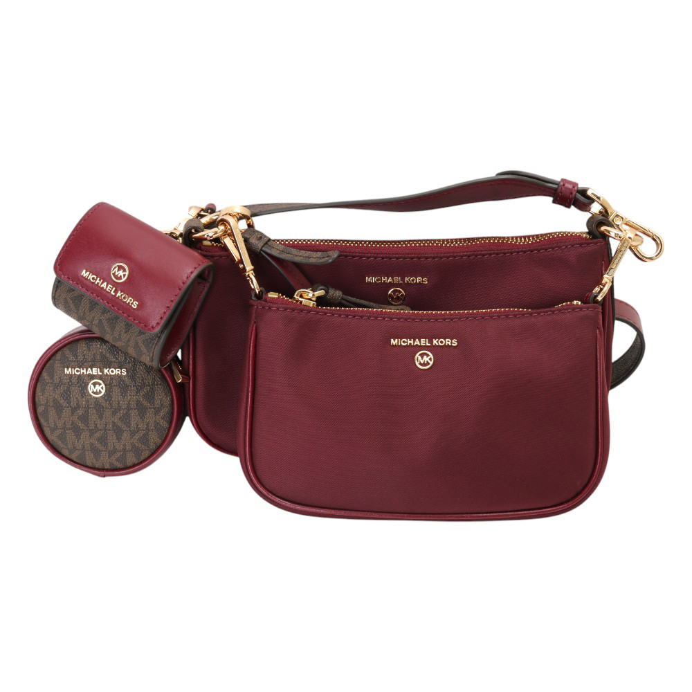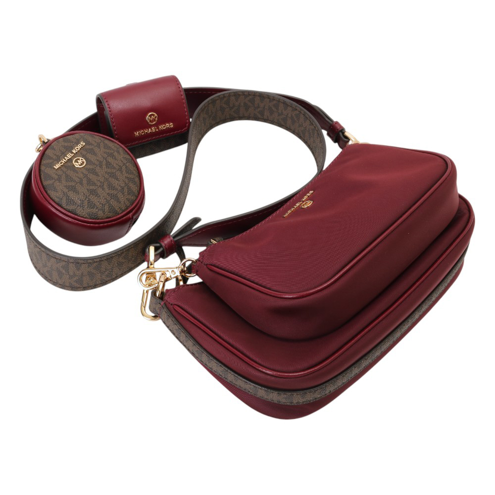MICHAEL KORS-附AirPods包 & 零錢包可拆手拿包尼龍斜背包(酒紅)