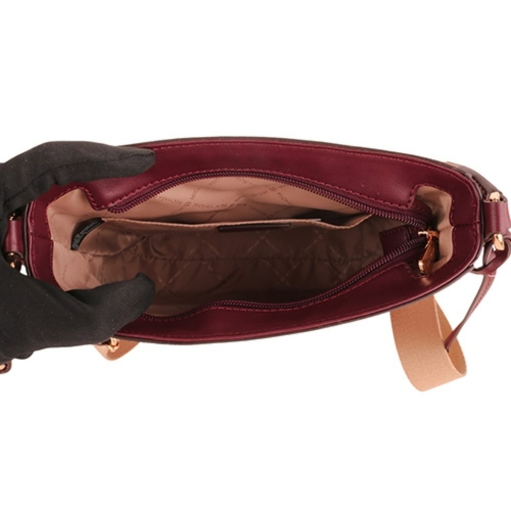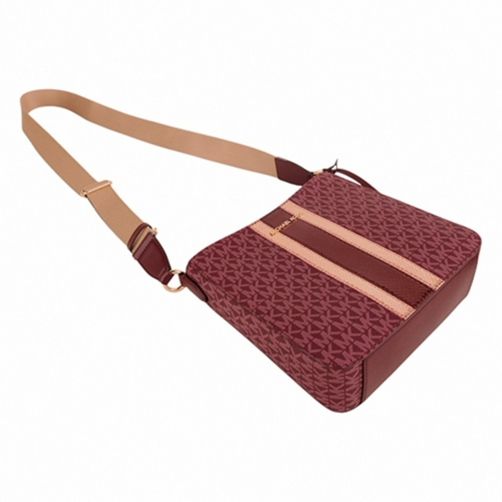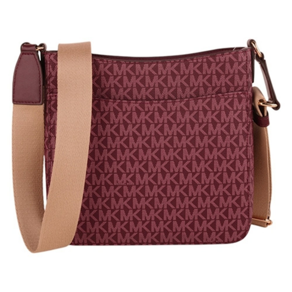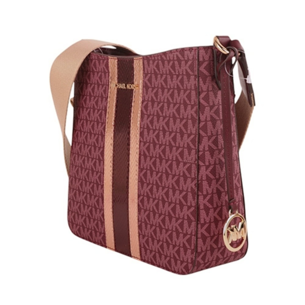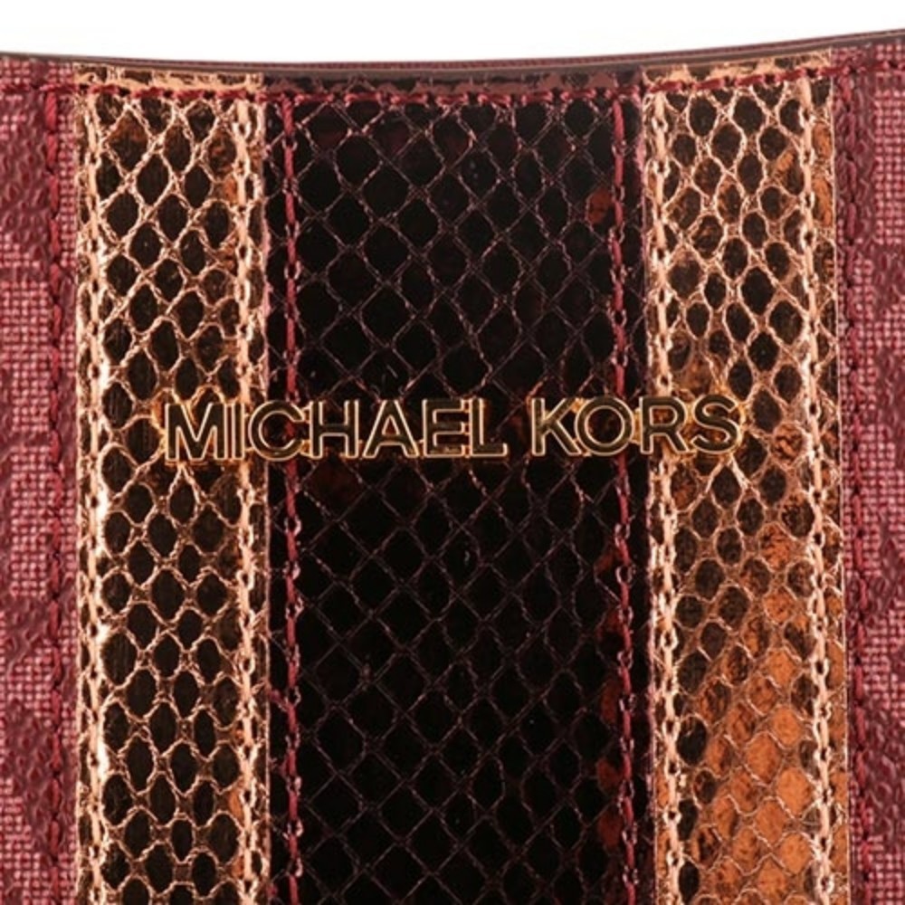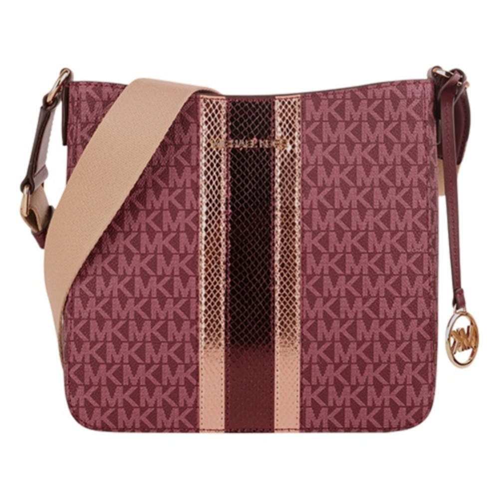 MICHAEL KORS-滿版防刮玫瑰金條槓拉鍊斜背包酒紅S