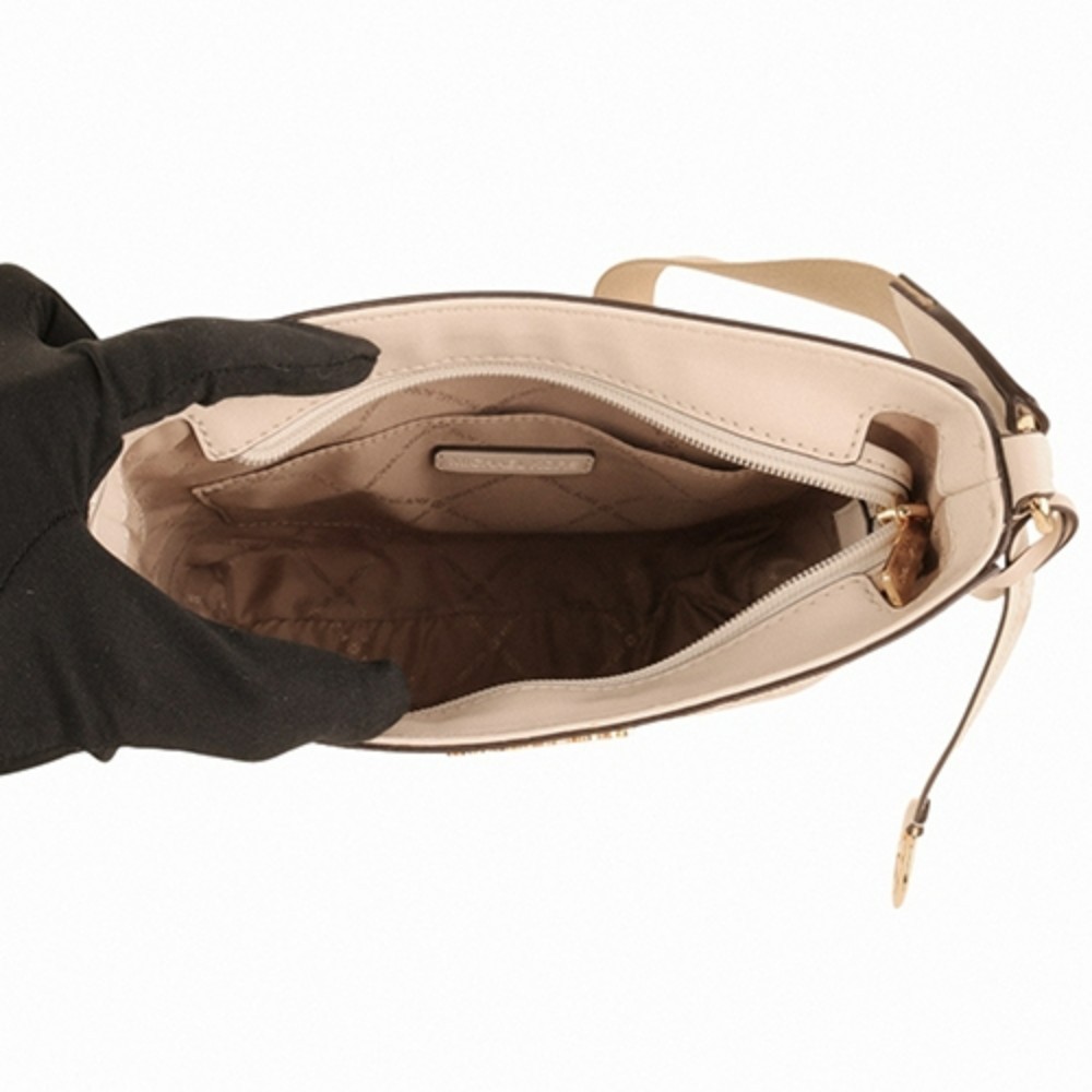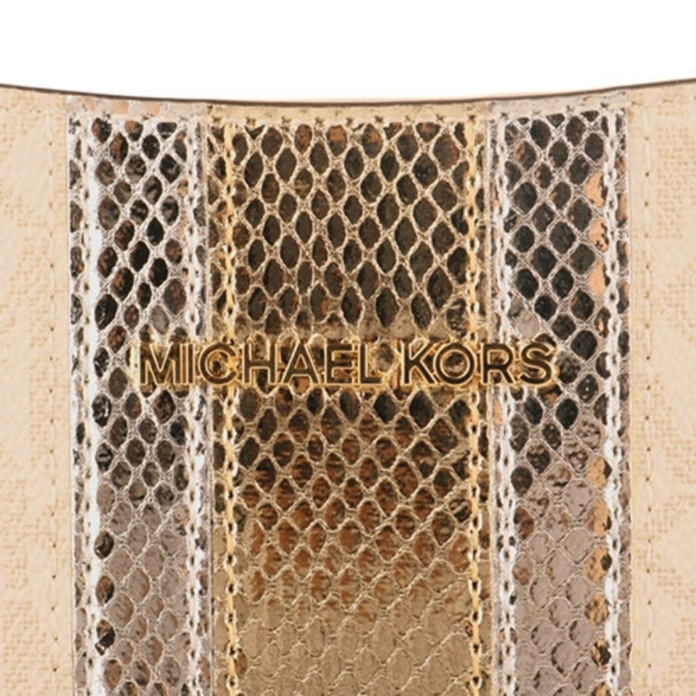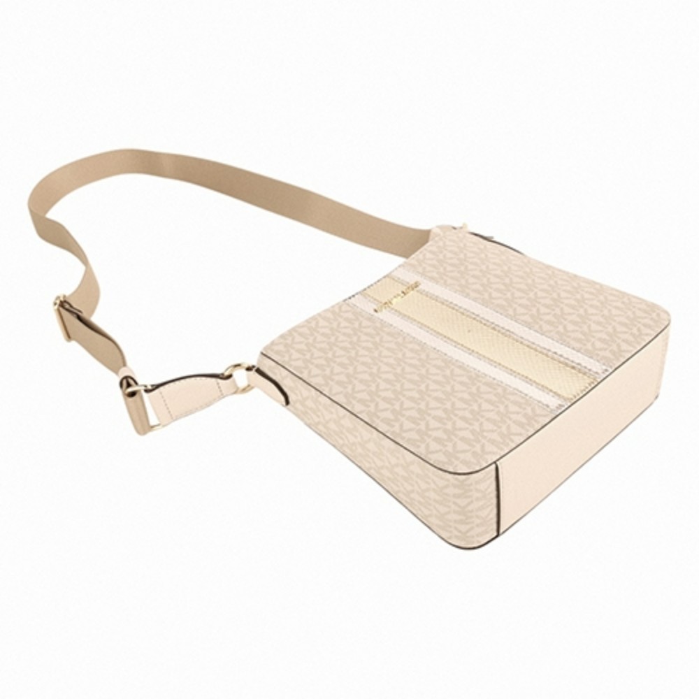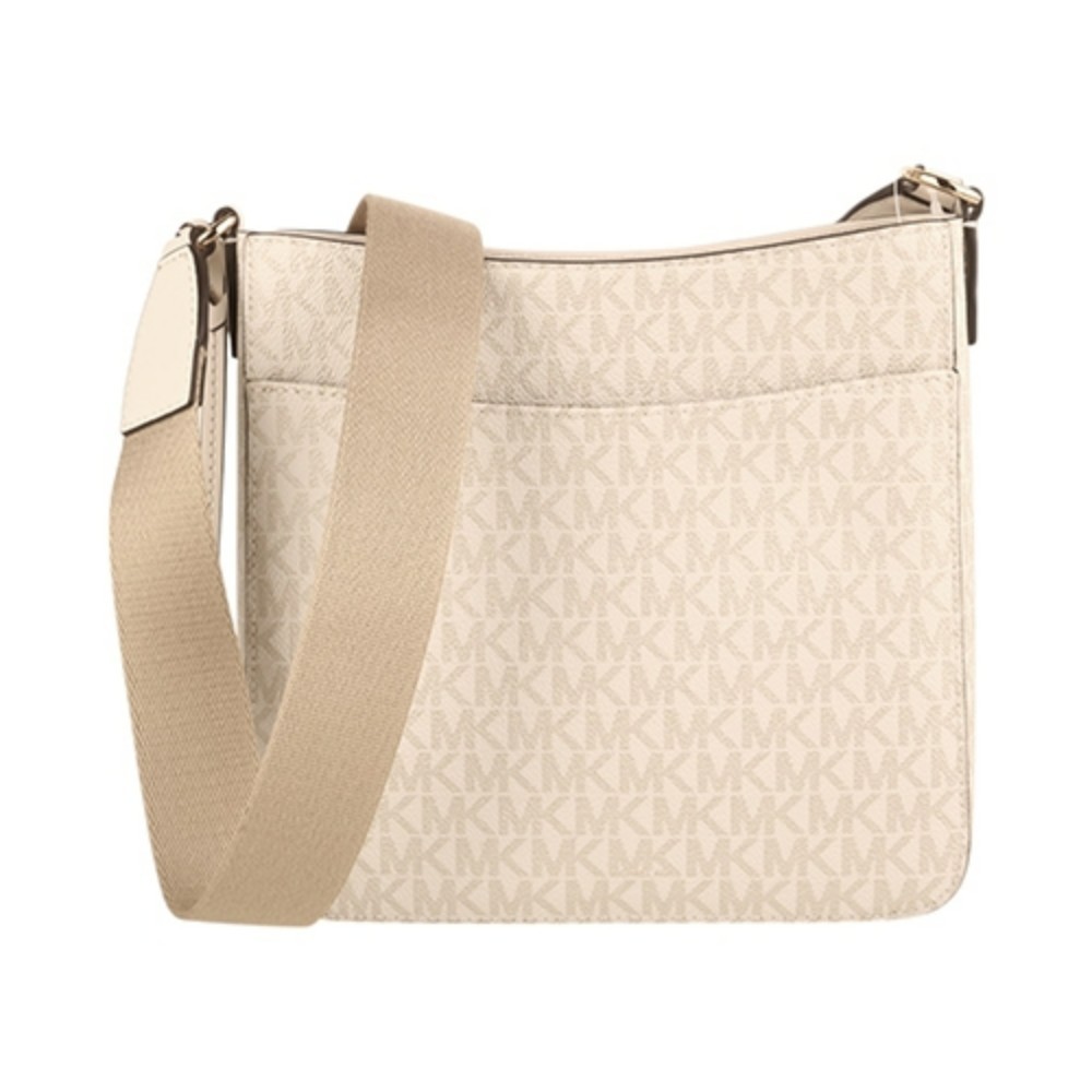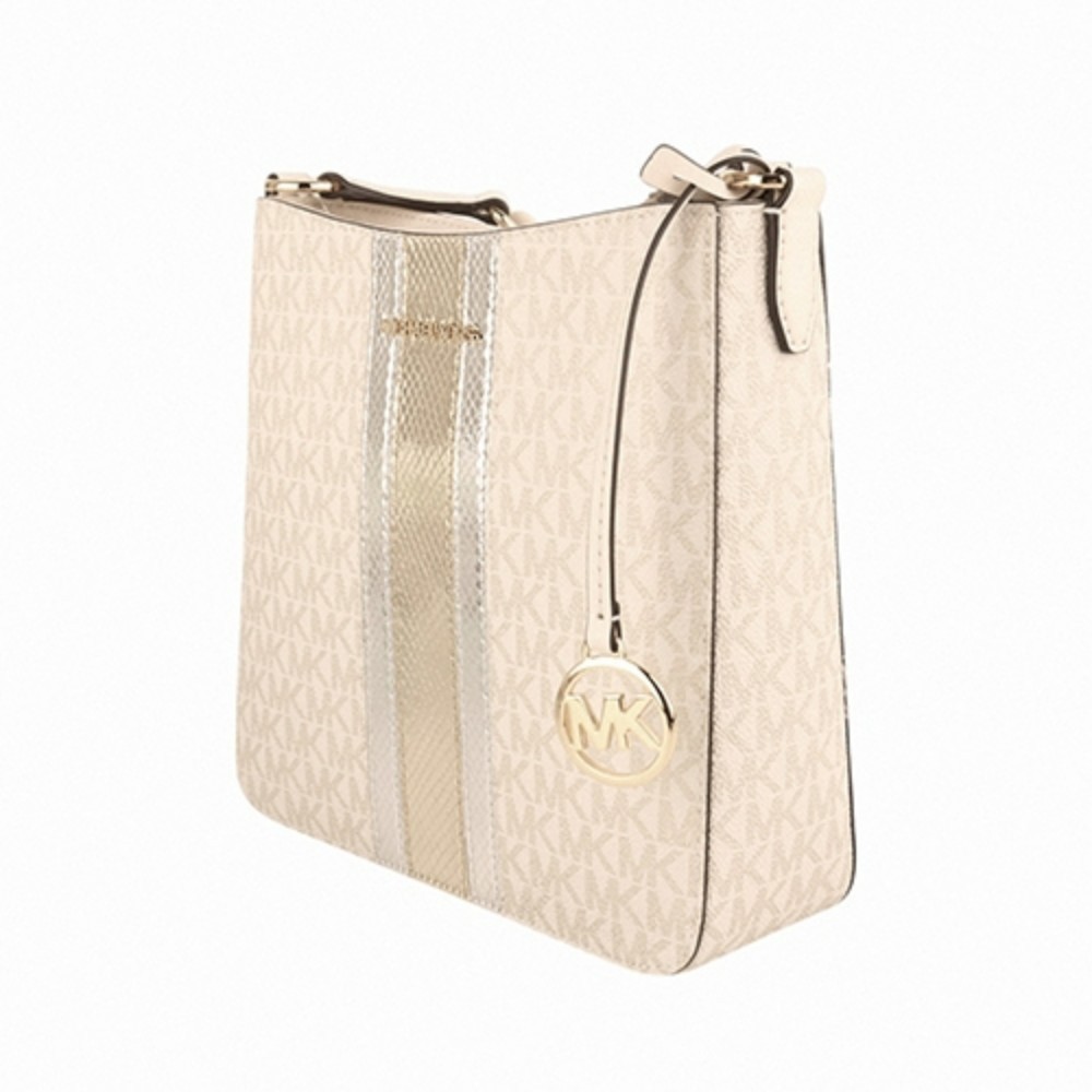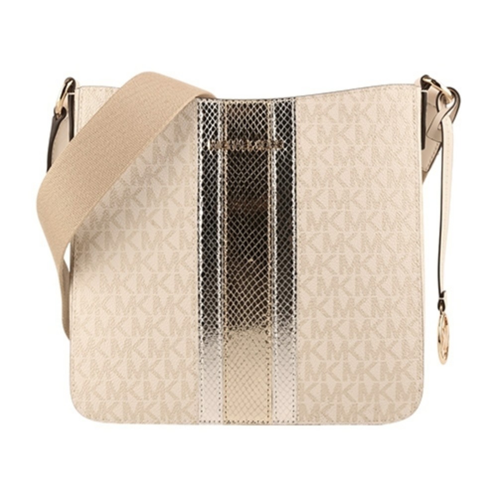 MICHAEL KORS-滿版防刮銀色條槓拉鍊斜背包米白S