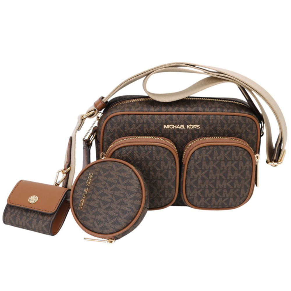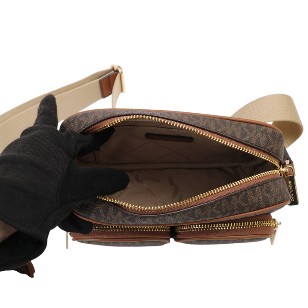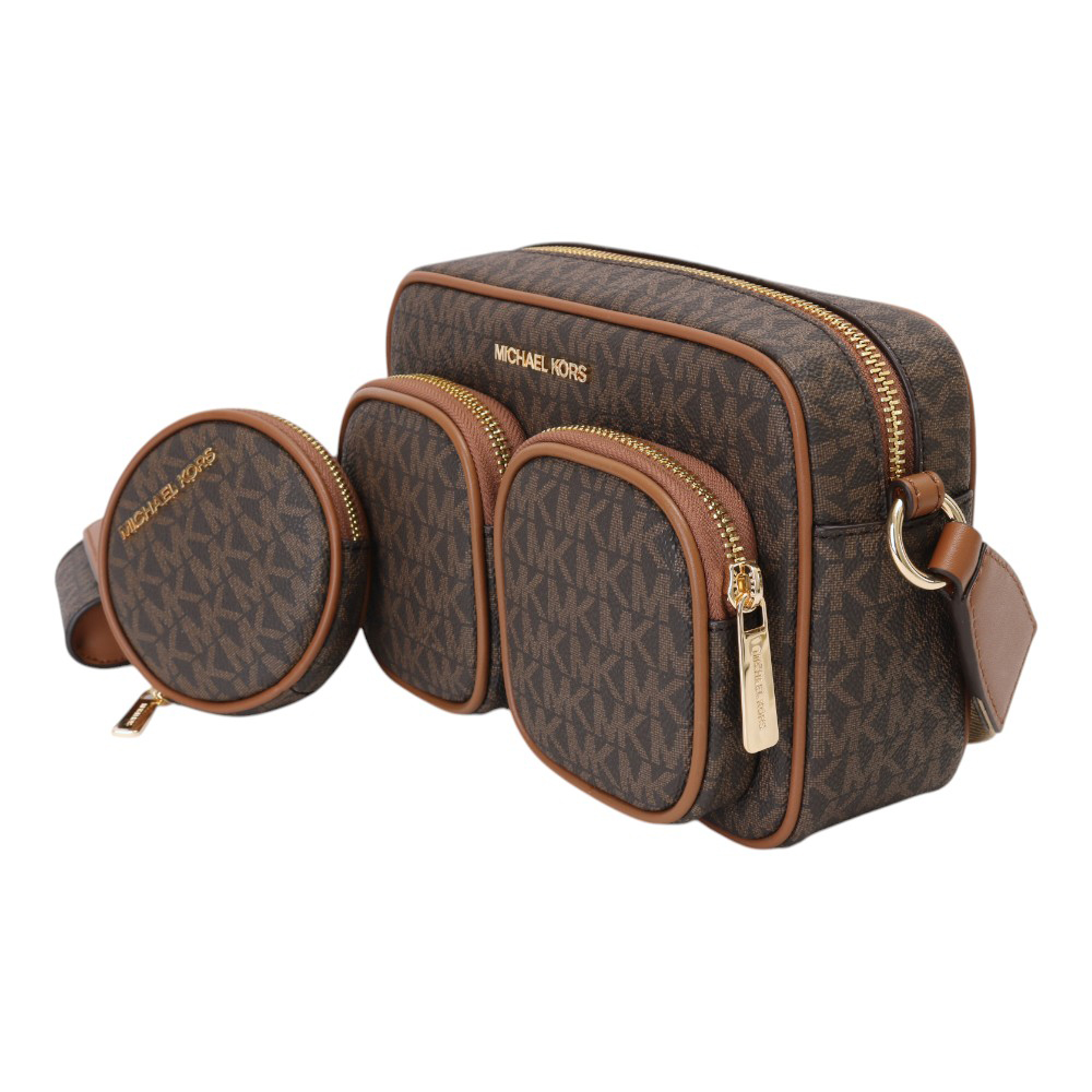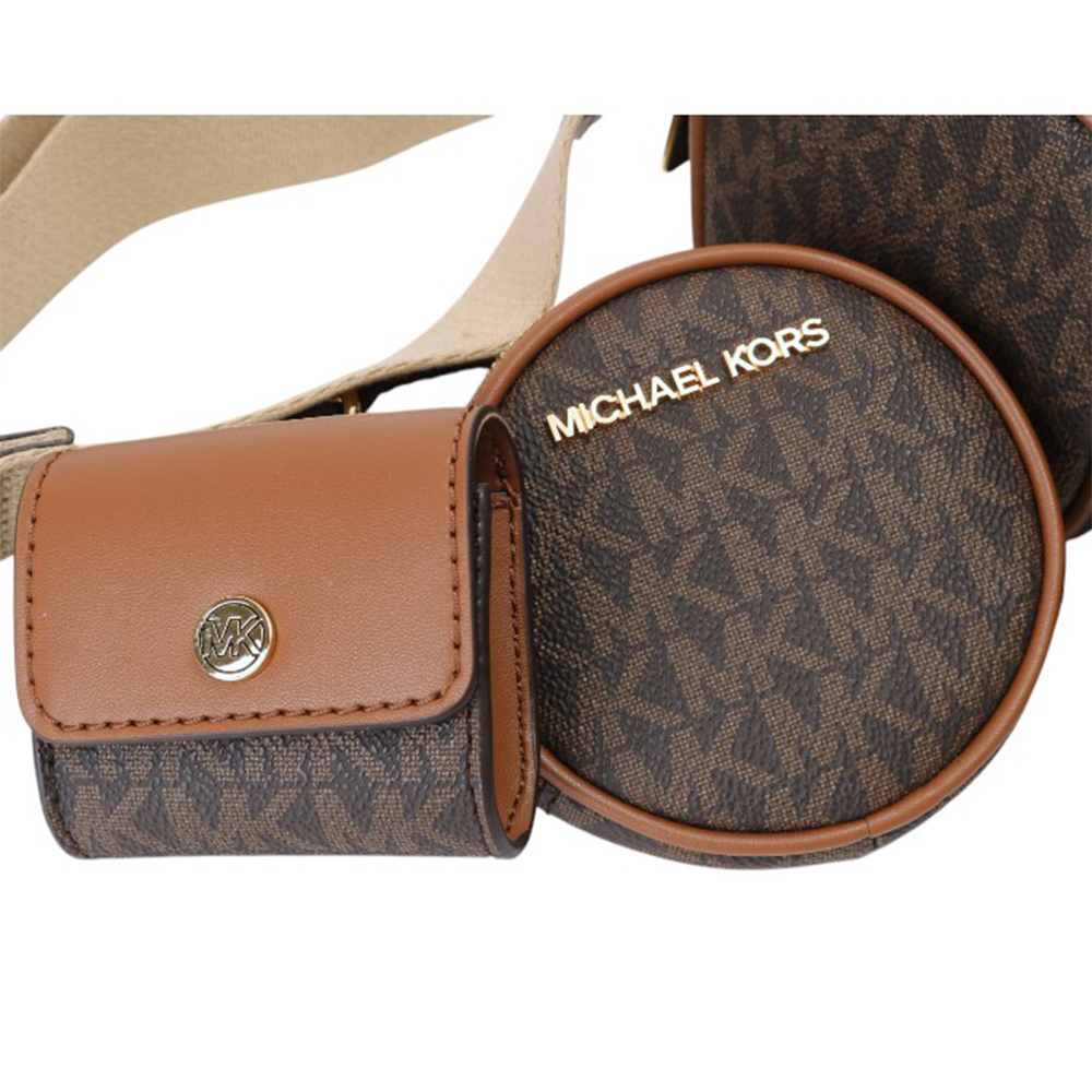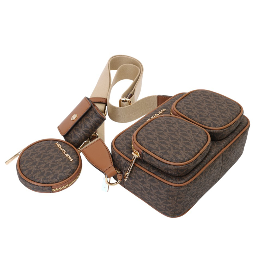 MICHAEL KORS- 滿版防刮附零錢包前雙口袋斜背包深咖/小