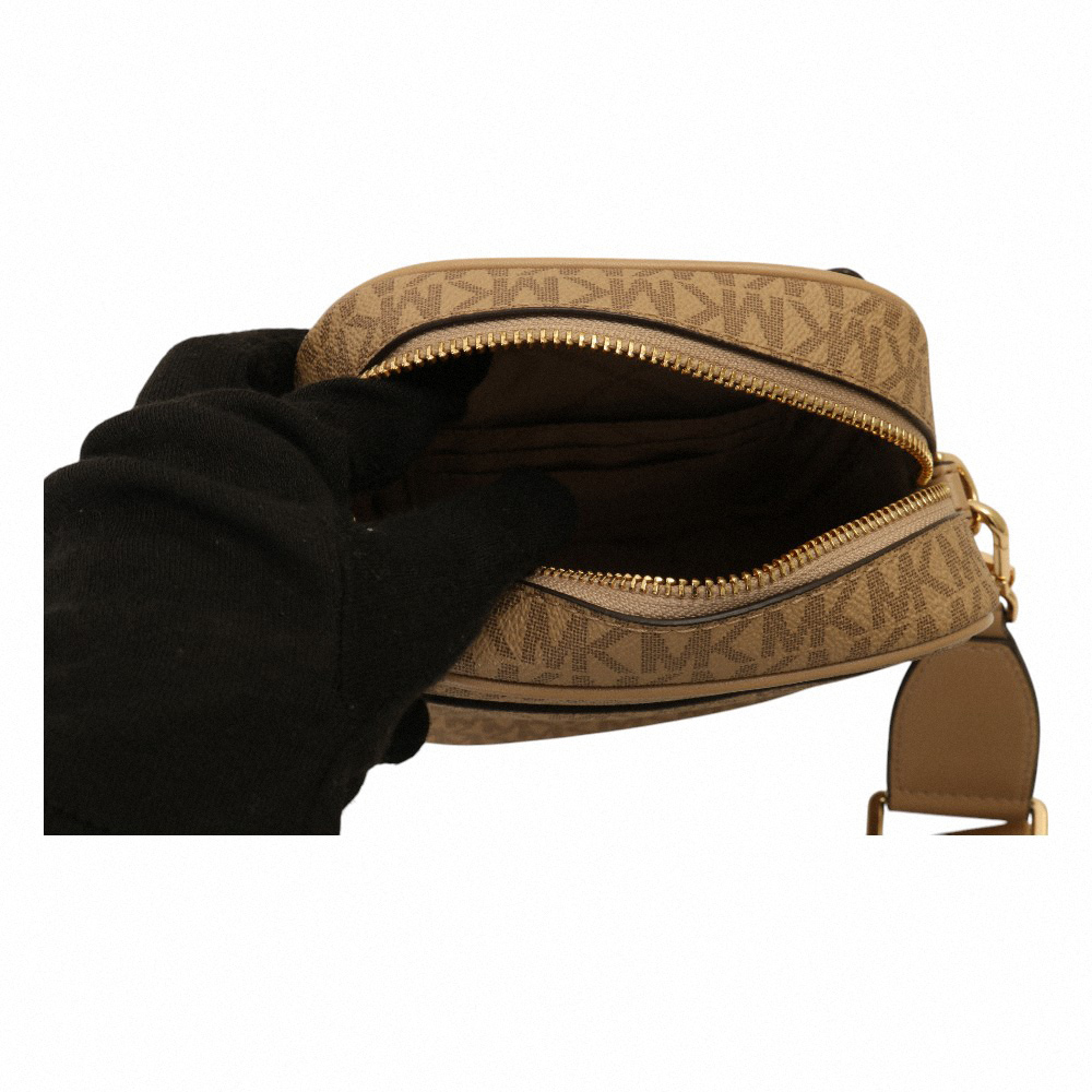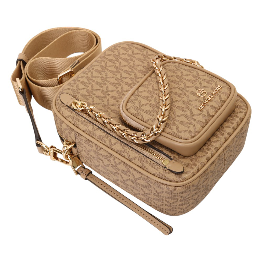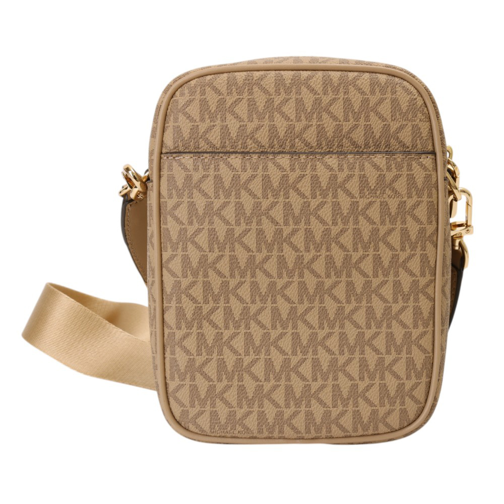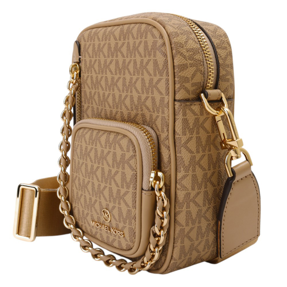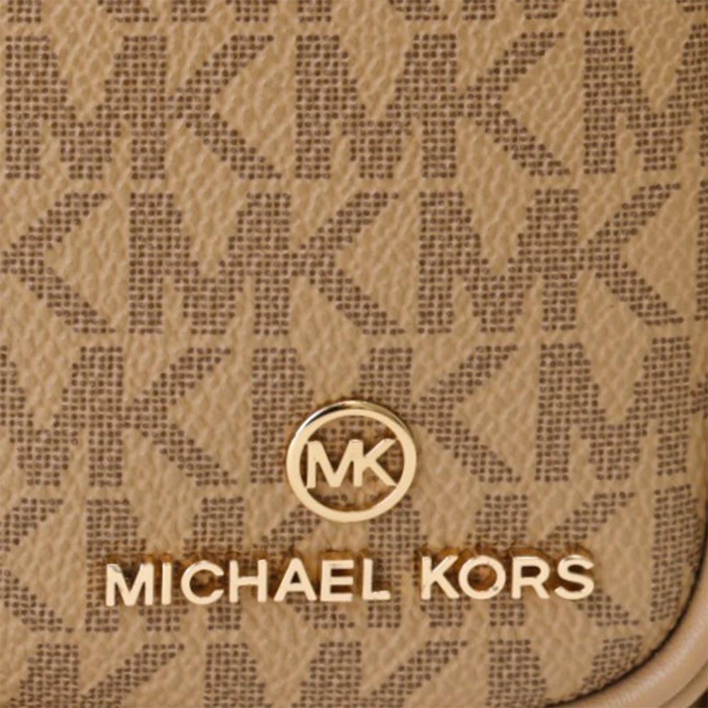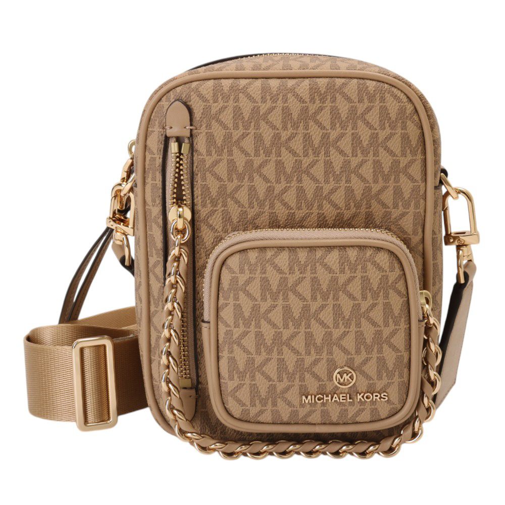 MICHAEL KORS- 滿版防刮LOGO 前鍊條斜背航空包(灰褐)