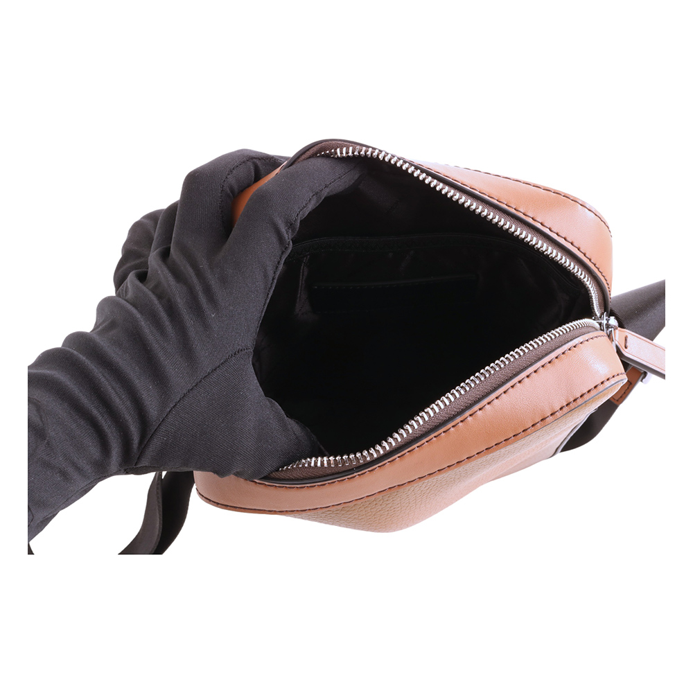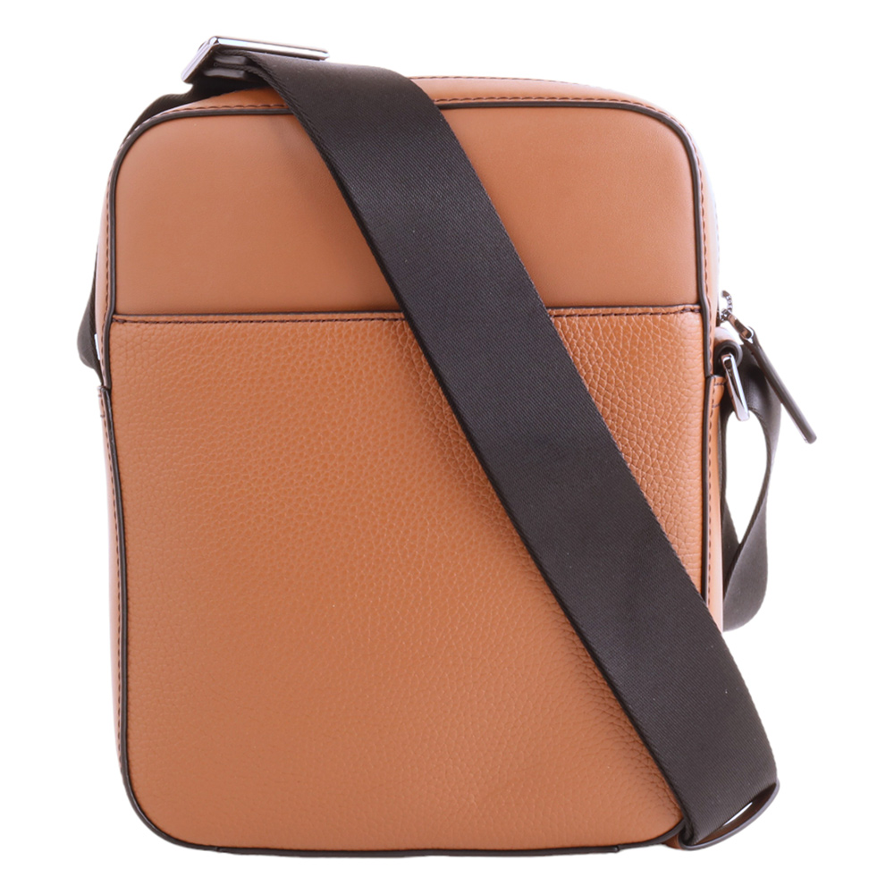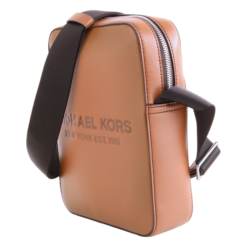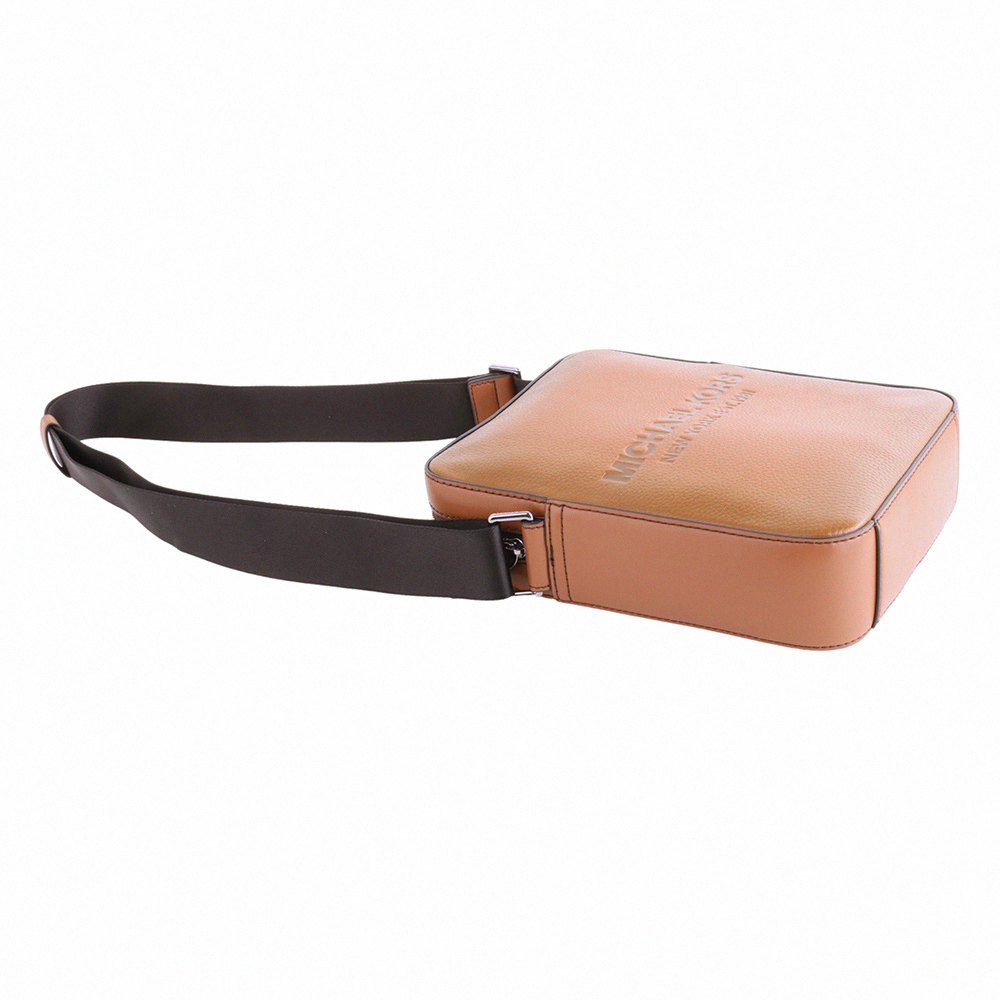 MICHAEL KORS- 烙印字母LOGO荔枝紋皮革直式斜背包駝色