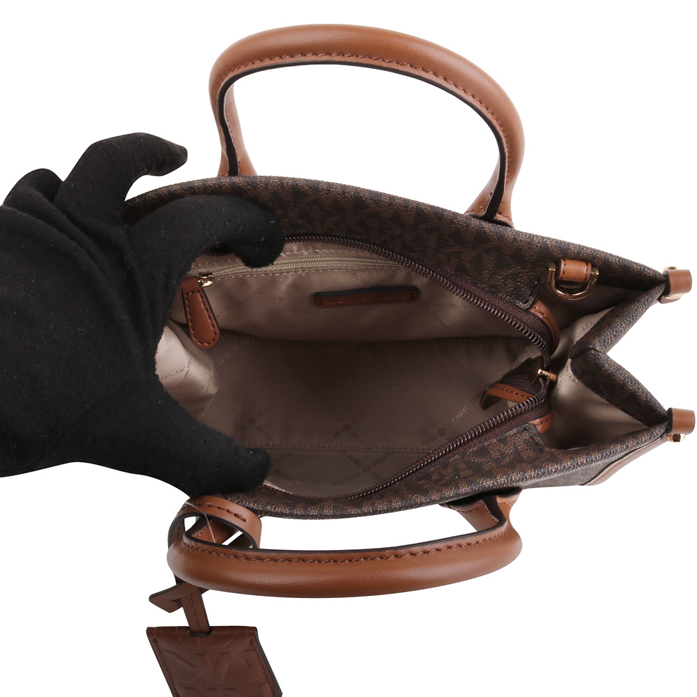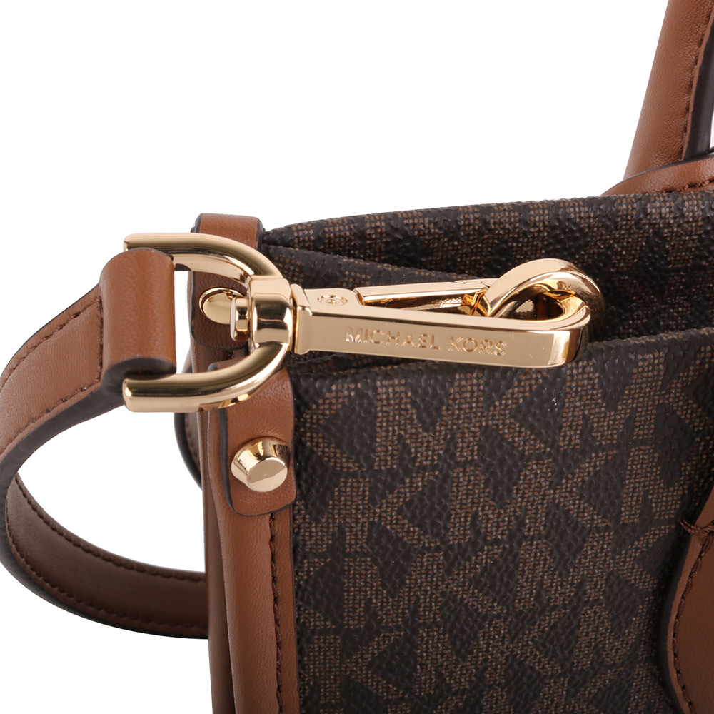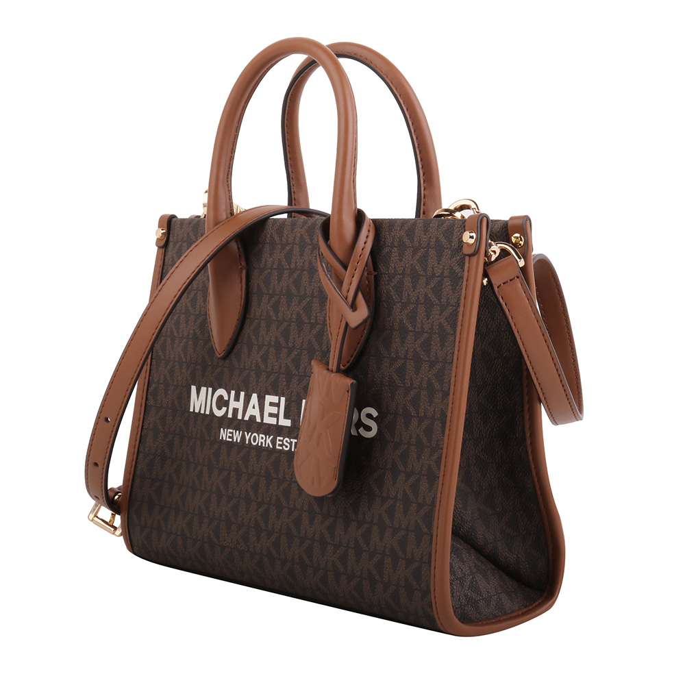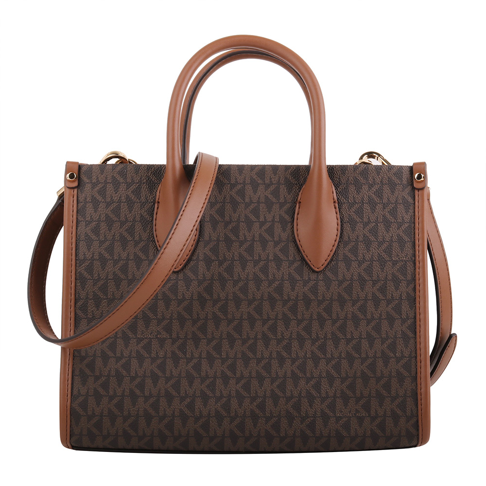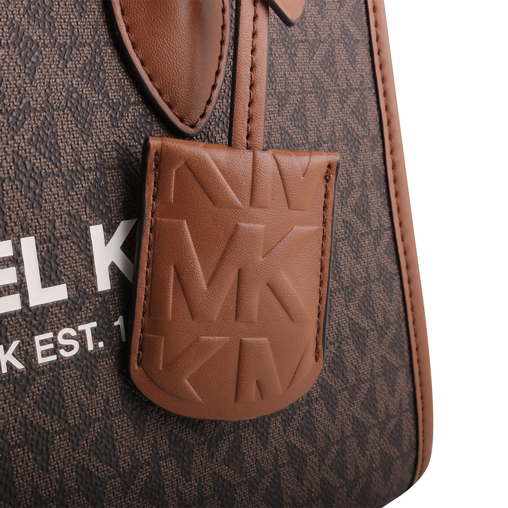 MICHAEL KORS-白標字母滿版防刮手提斜背兩用包深咖/小