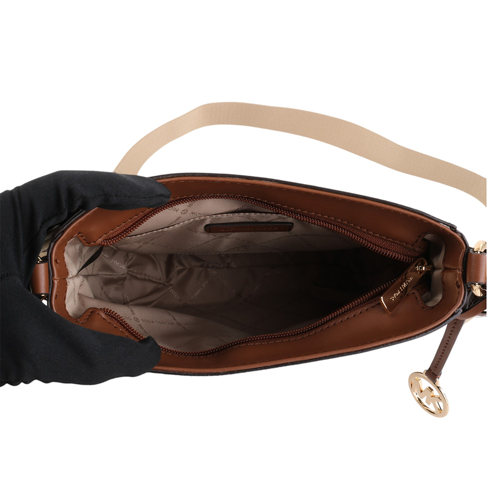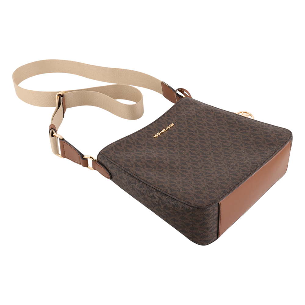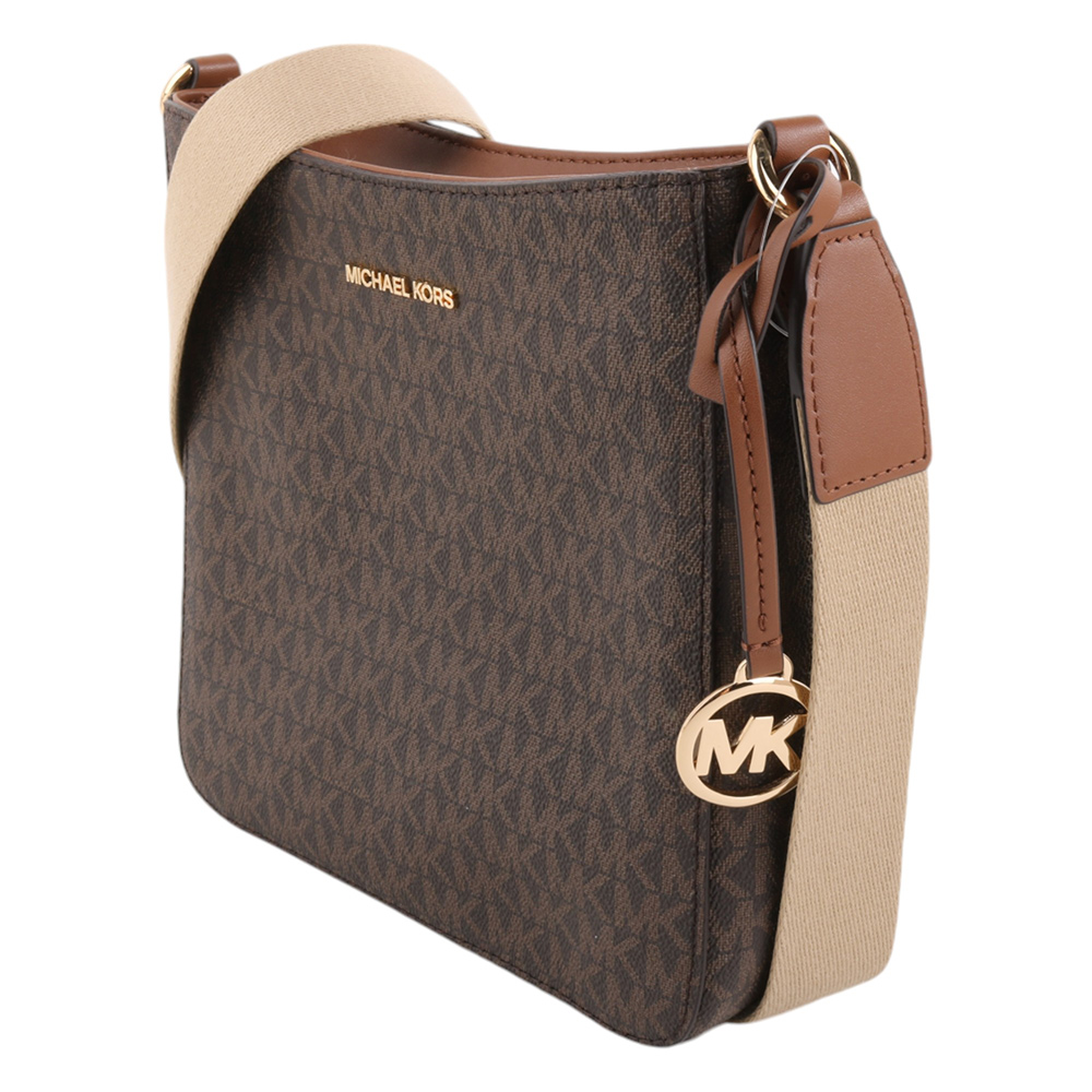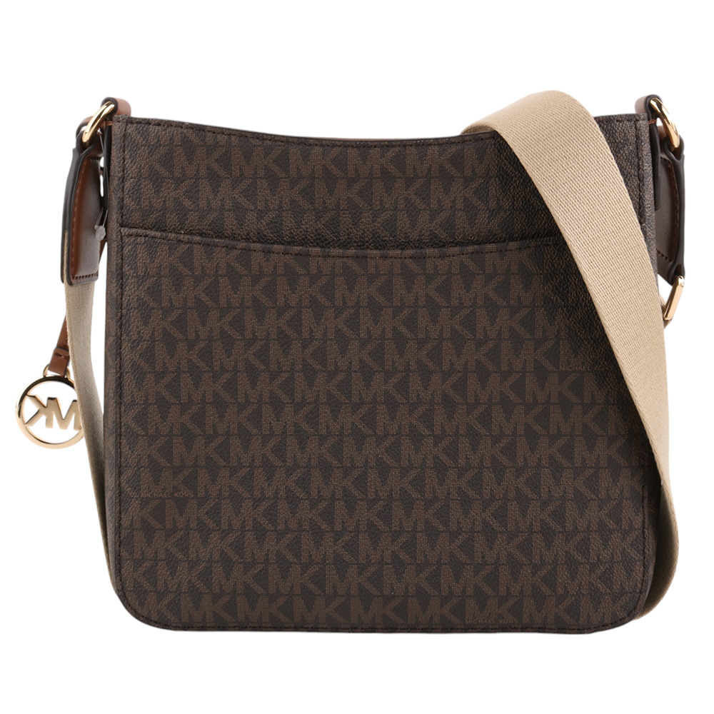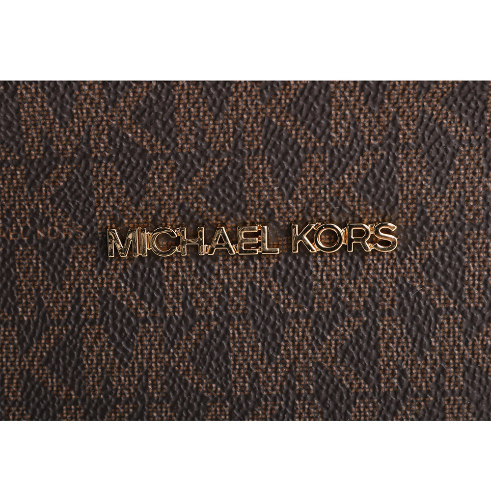 MICHAEL KORS- 金字防刮滿版LOGO直式斜背包深咖/小