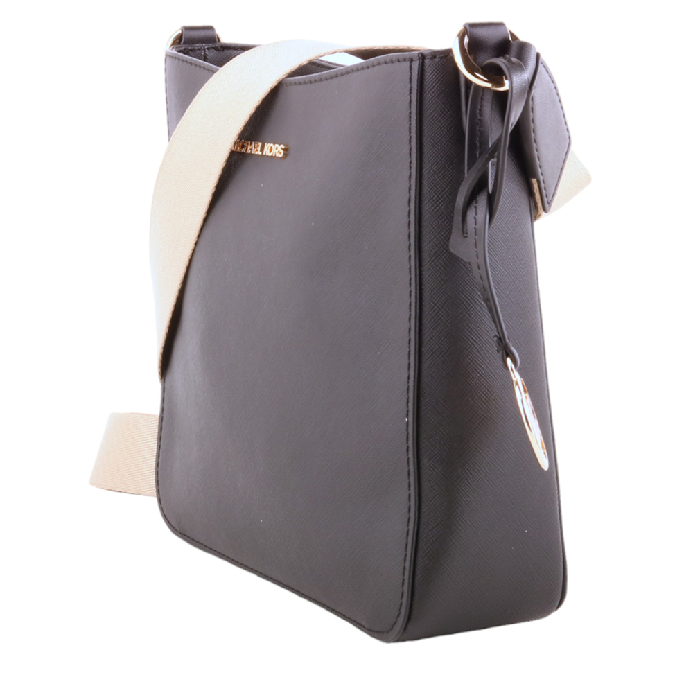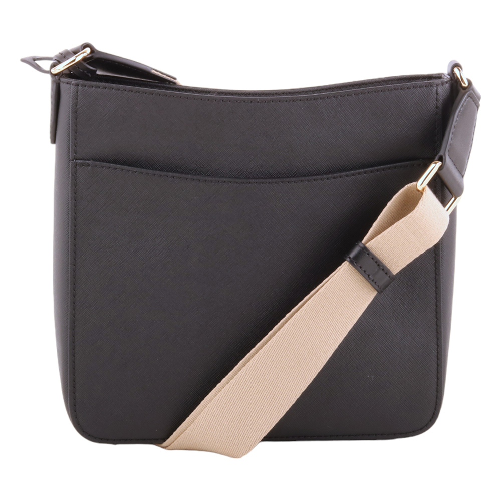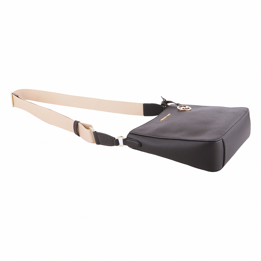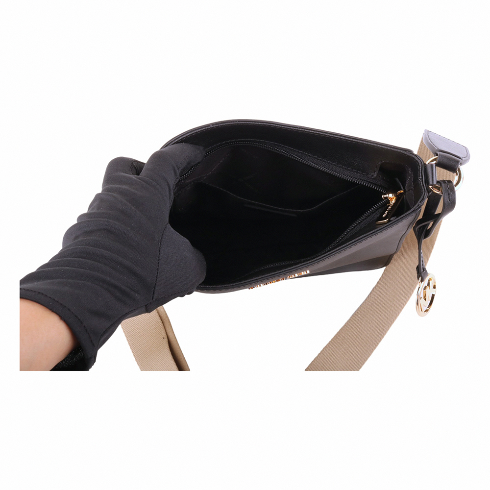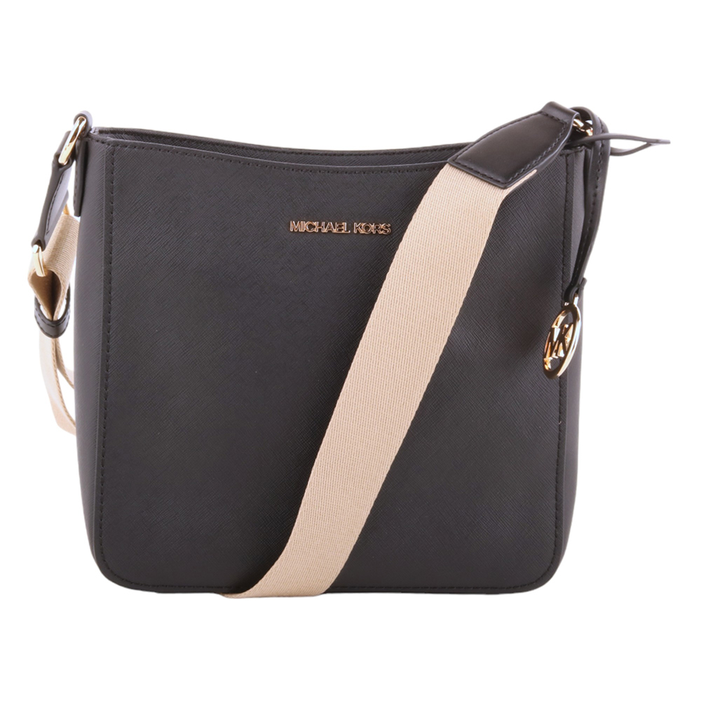MICHAEL KORS-金字防刮PVC 卡其織帶直式斜背包黑