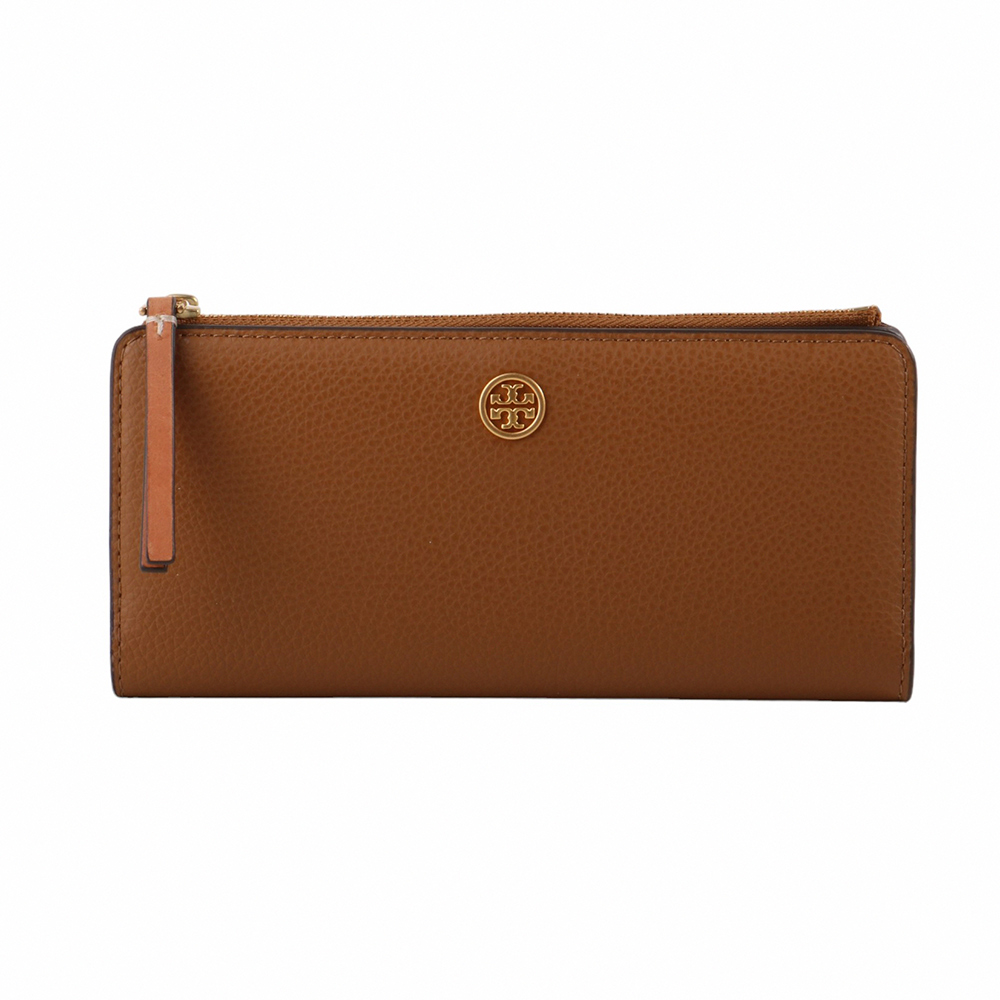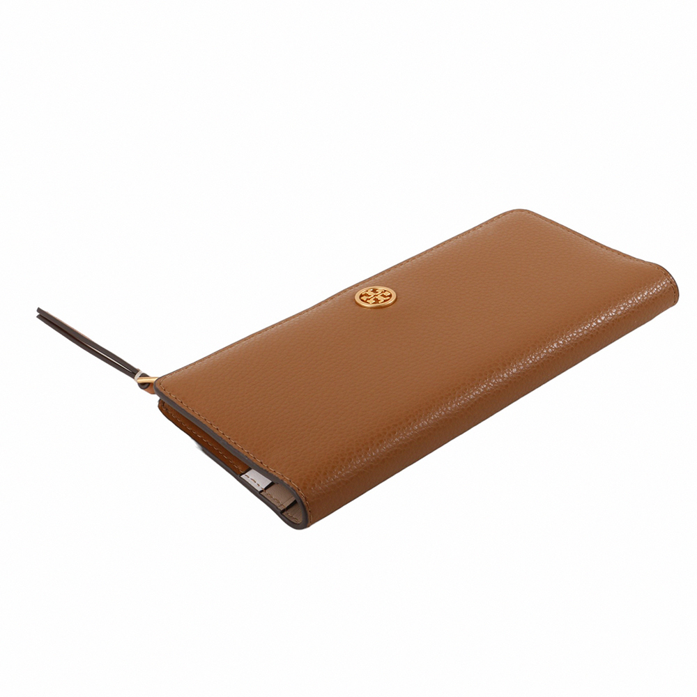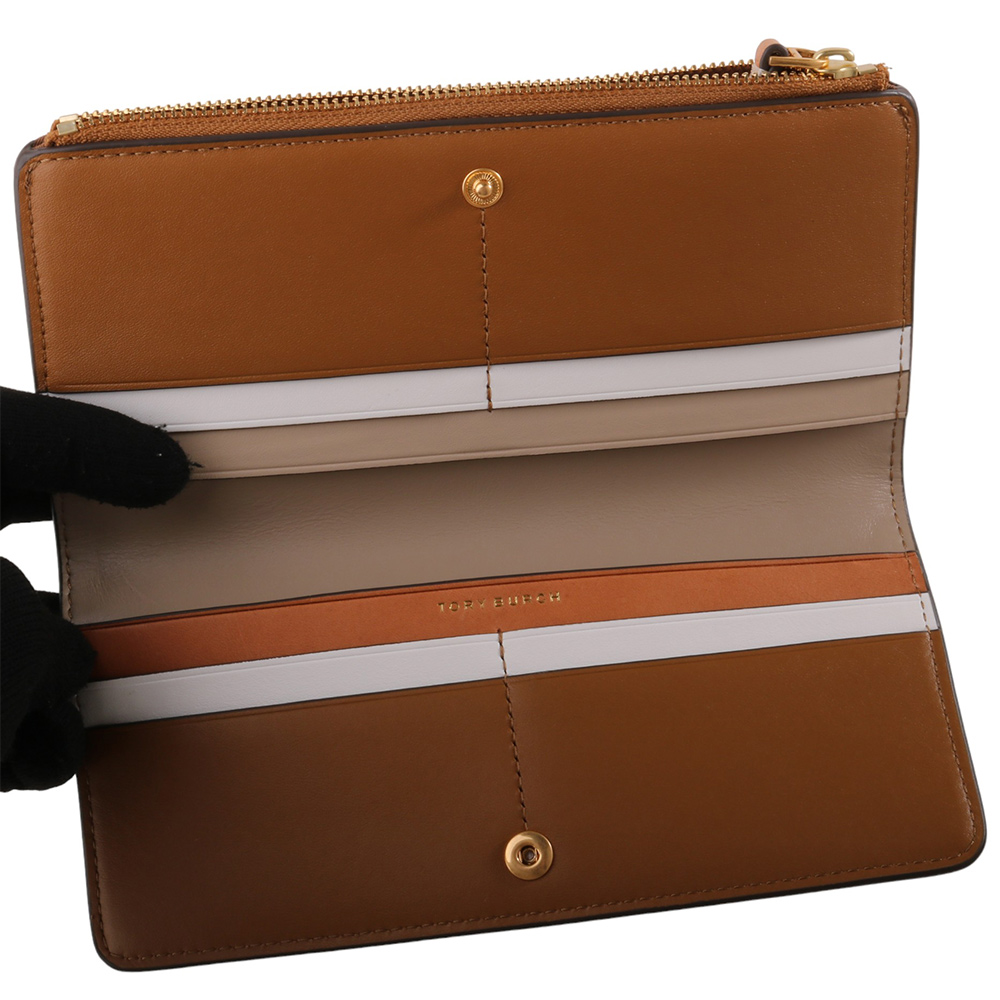Home - TORY BURCH - TORY BURCH- 皮革暗釦對開薄款長夾駝色