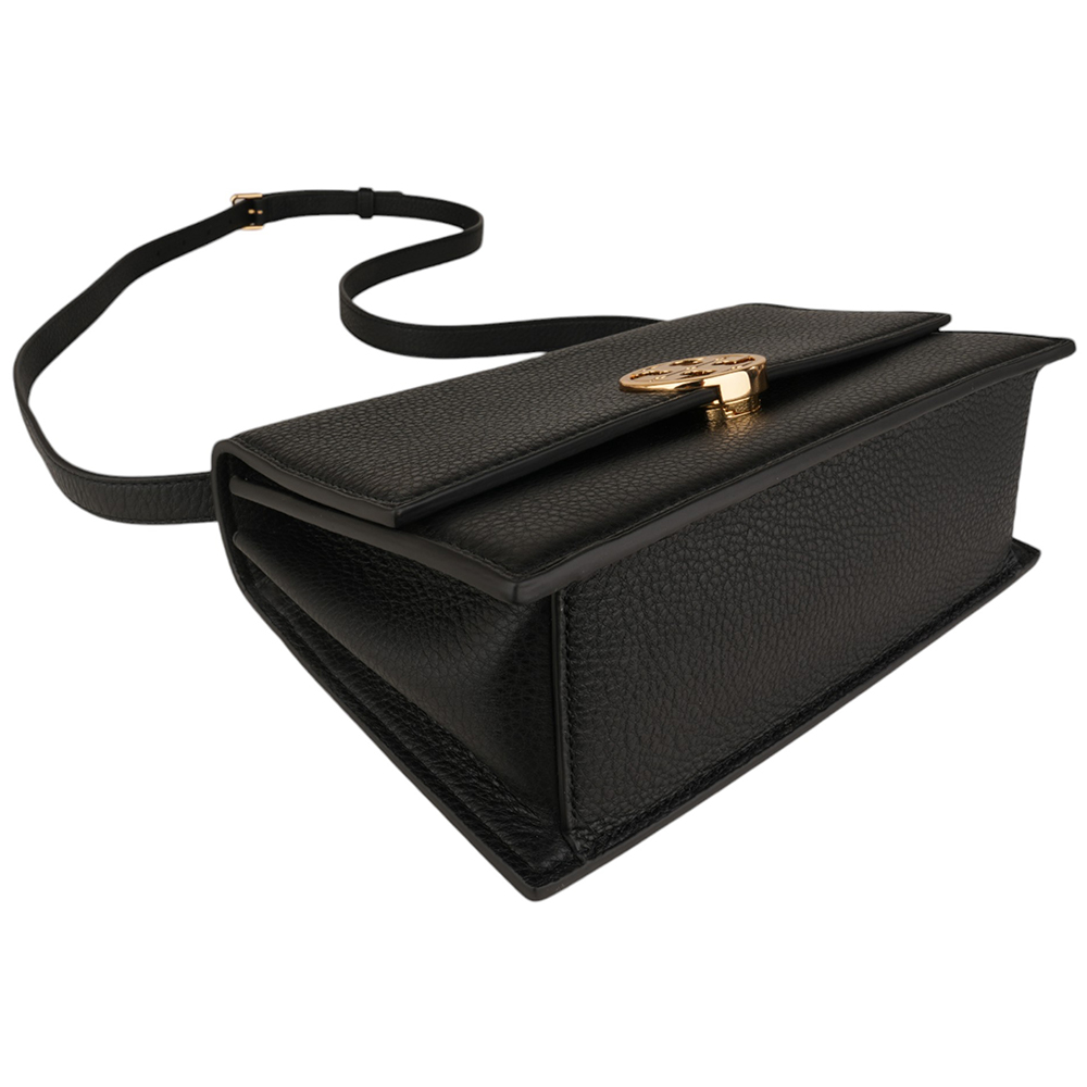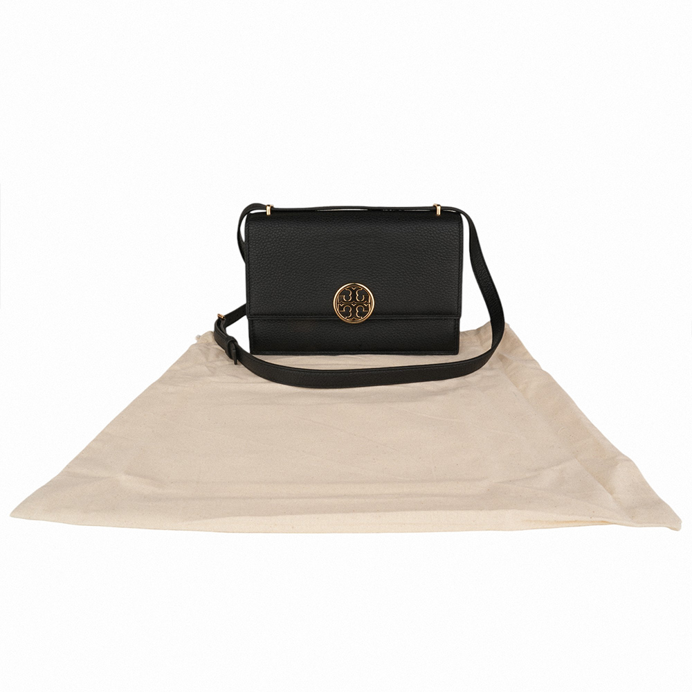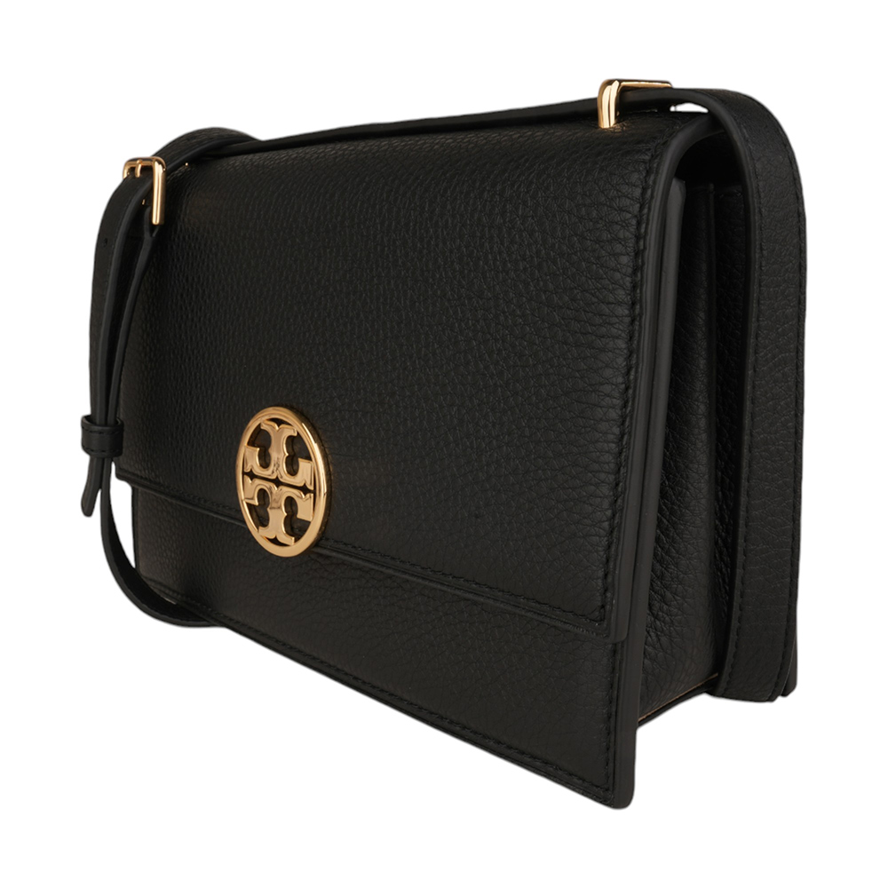 TORY BURCH-圓金TB 荔枝皮革肩/斜背包 黑