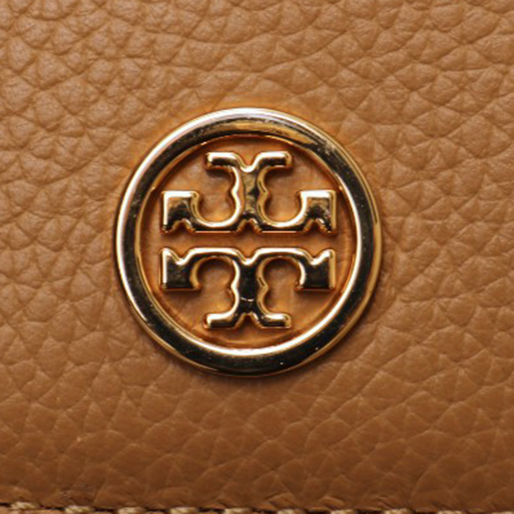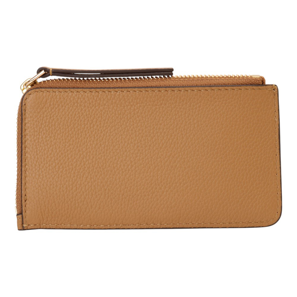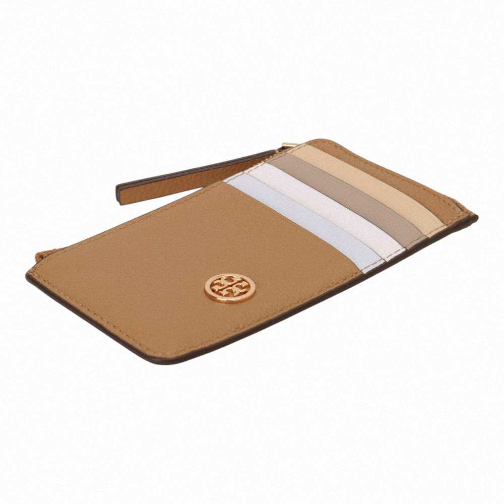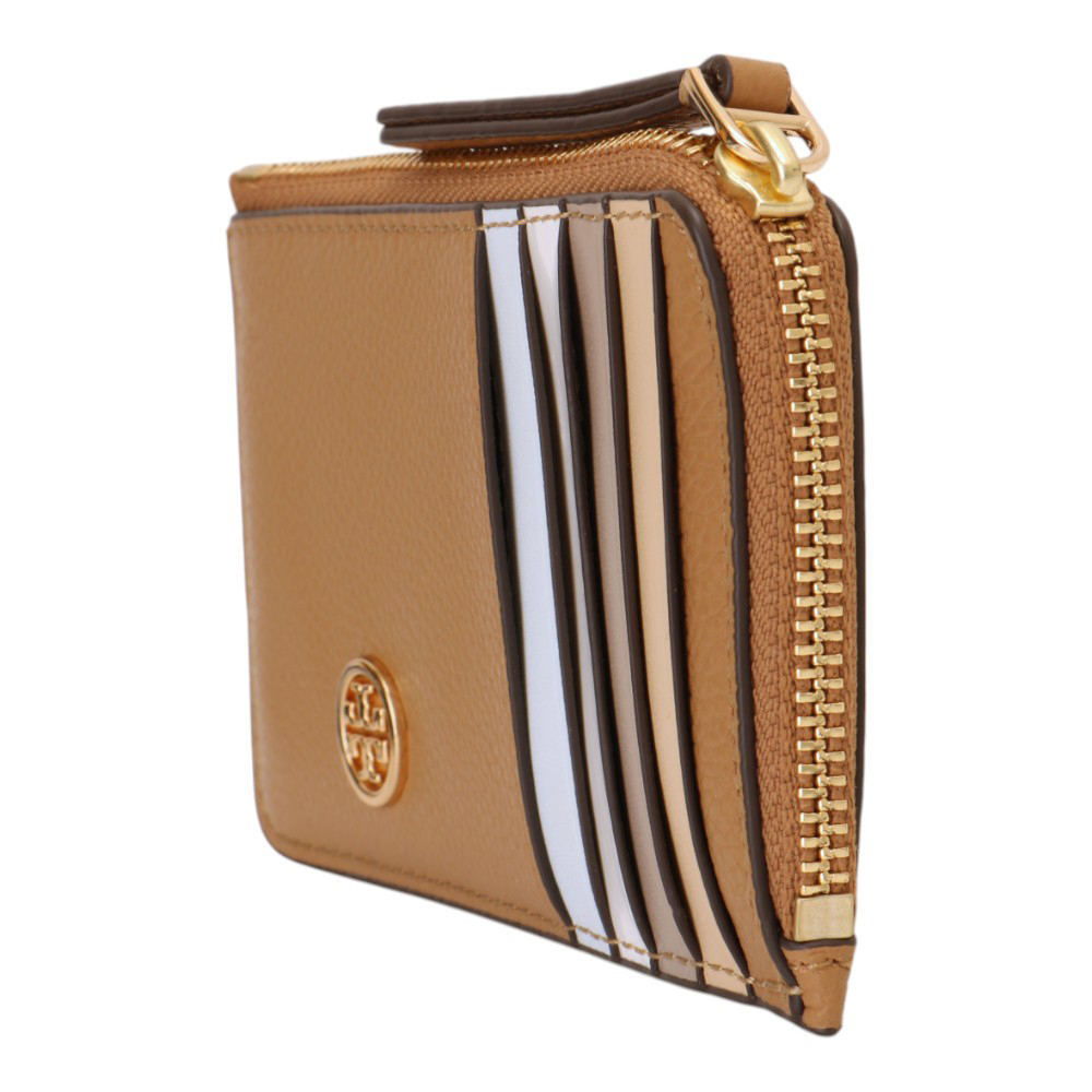 TORY BURCH-撞色多卡夾皮革L型拉鍊卡夾零錢包駝米