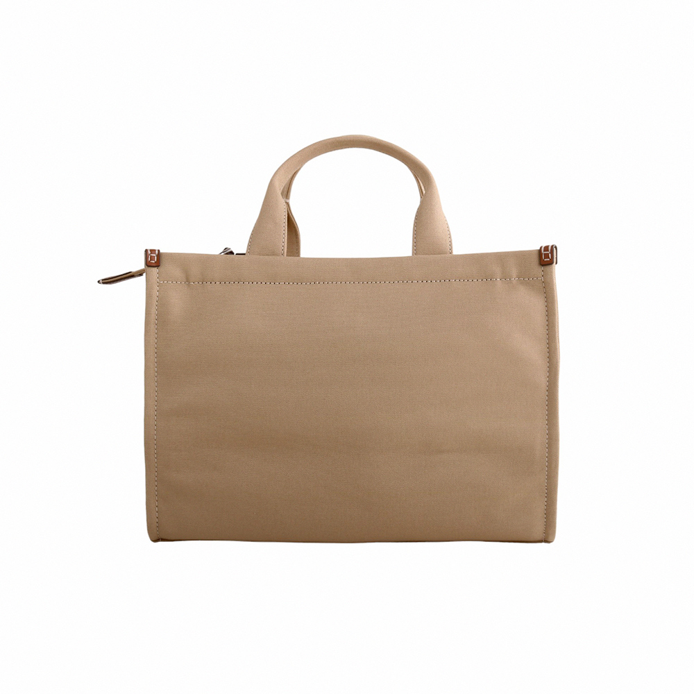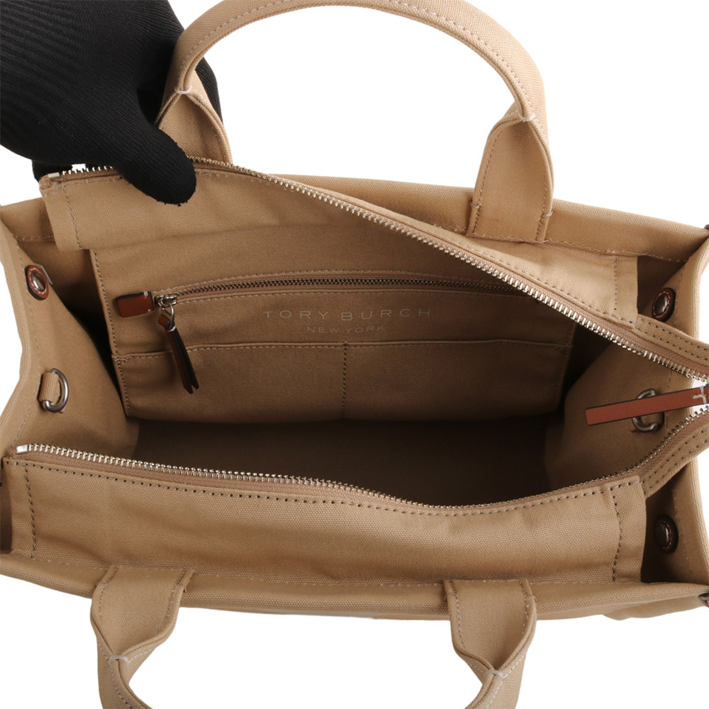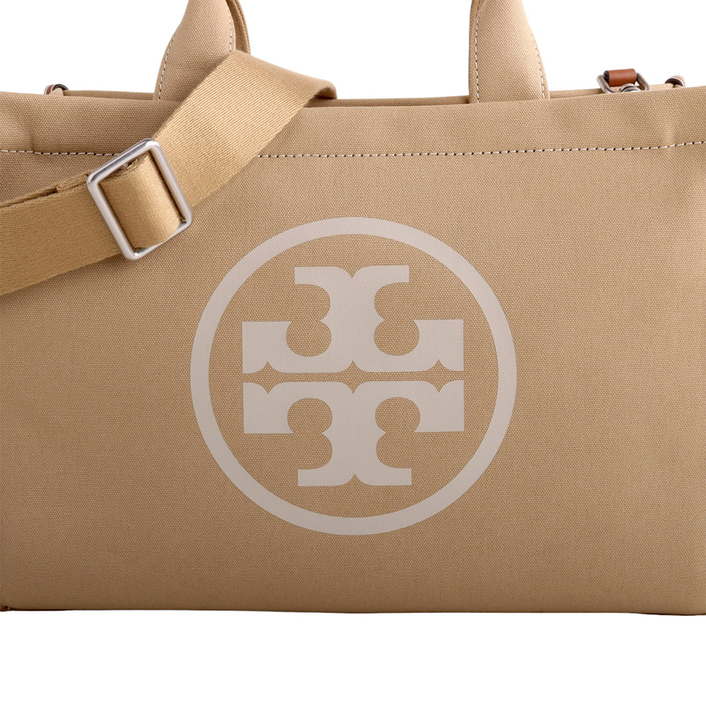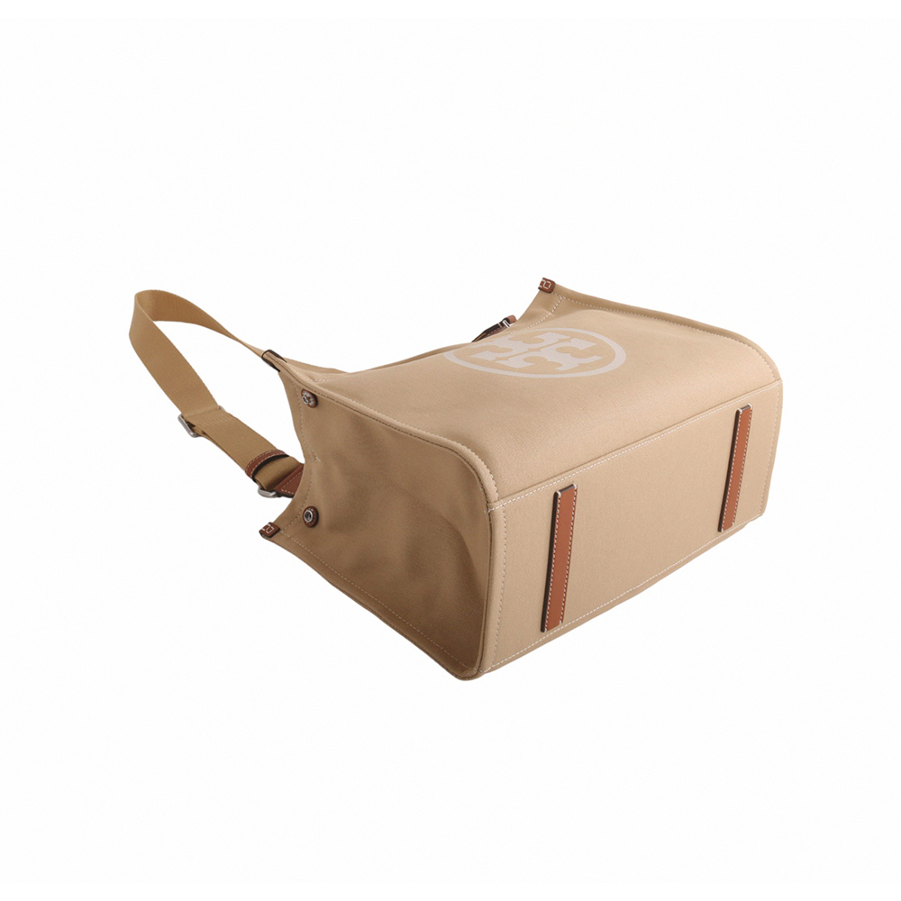 TORY BURCH-白標LOGO帆布兩用托特包大地色M