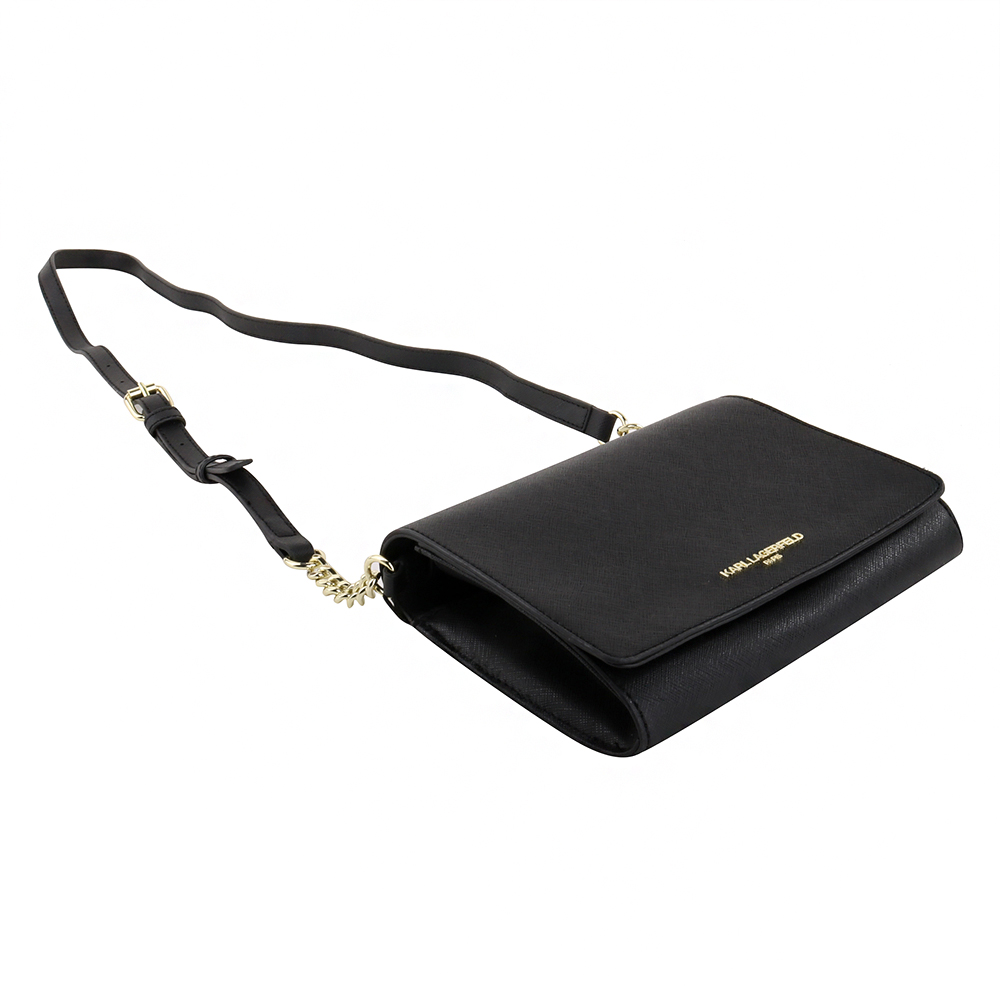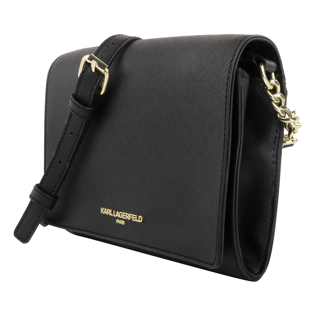 KARL LAGERFELD-素面防刮PVC 暗釦斜背包/黑mini