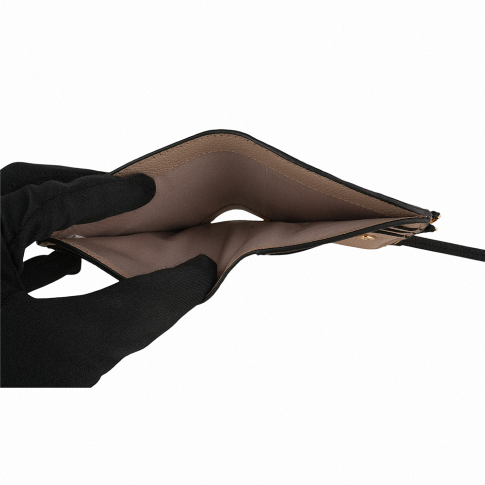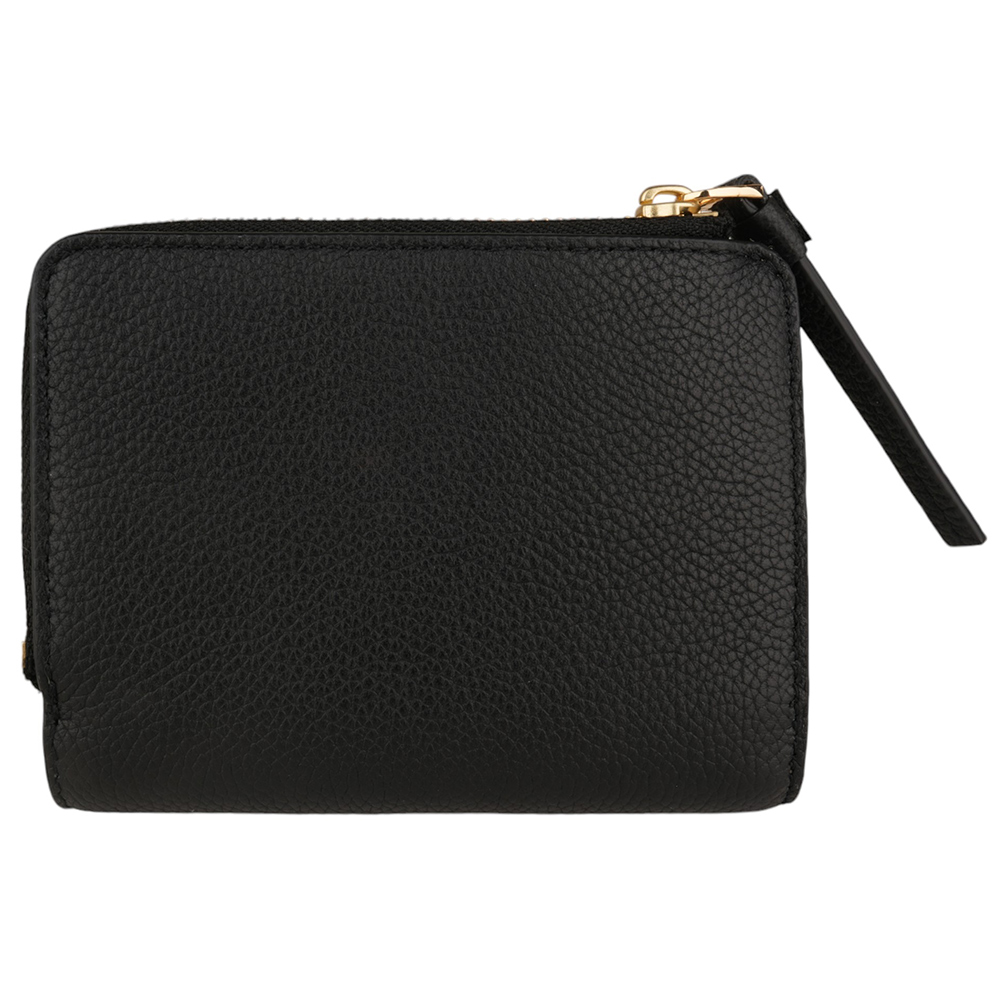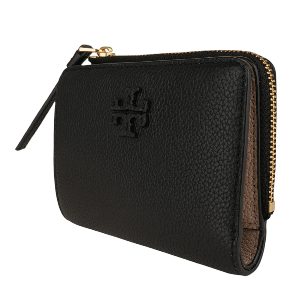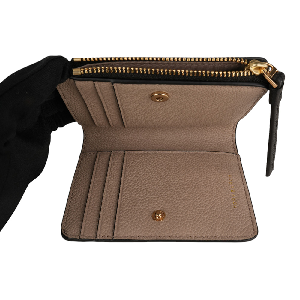 TORY BURCH-皮雕TB皮革拉鍊暗釦短夾黑