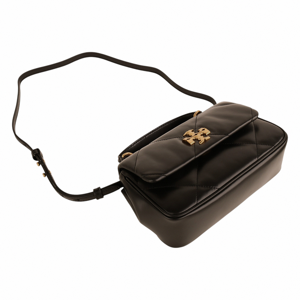 TORY BURCH-縫線大菱格皮革手提/斜背包黑S