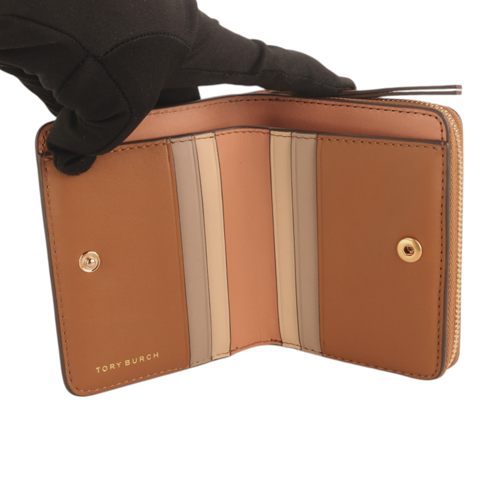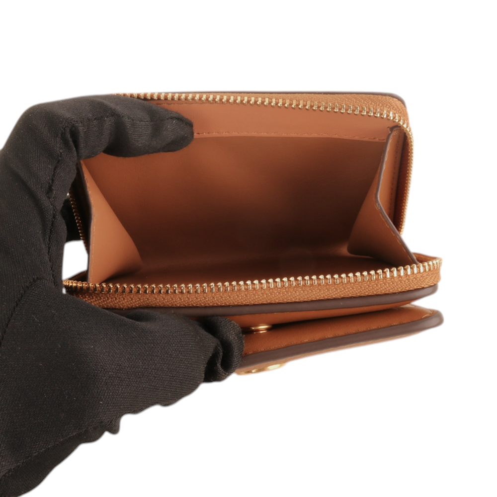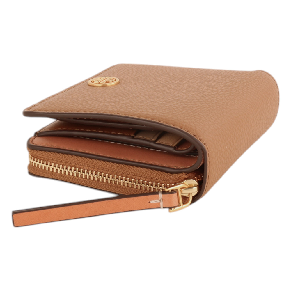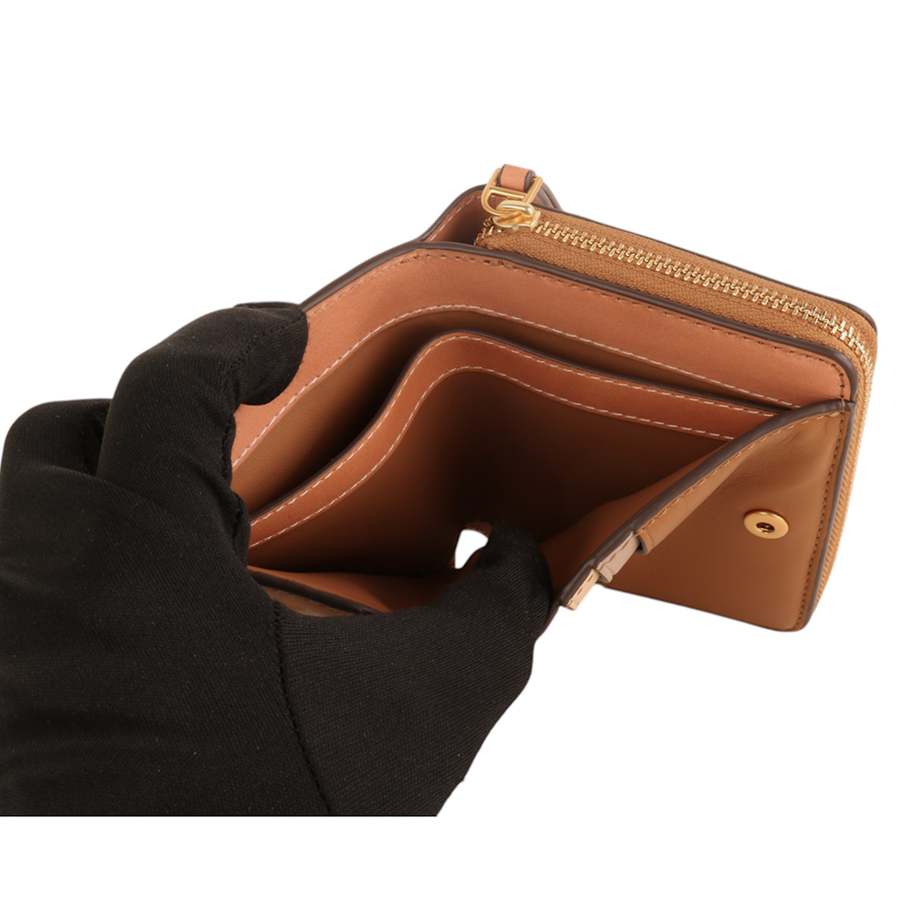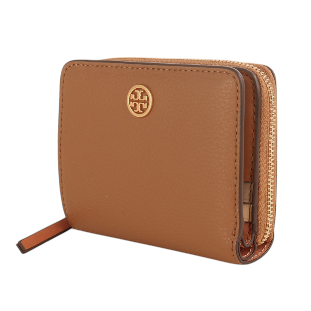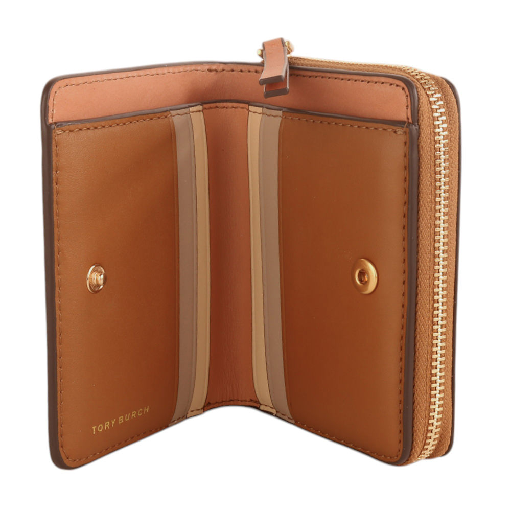TORY BURCH-荔枝紋皮革暗釦對開短夾(駝)