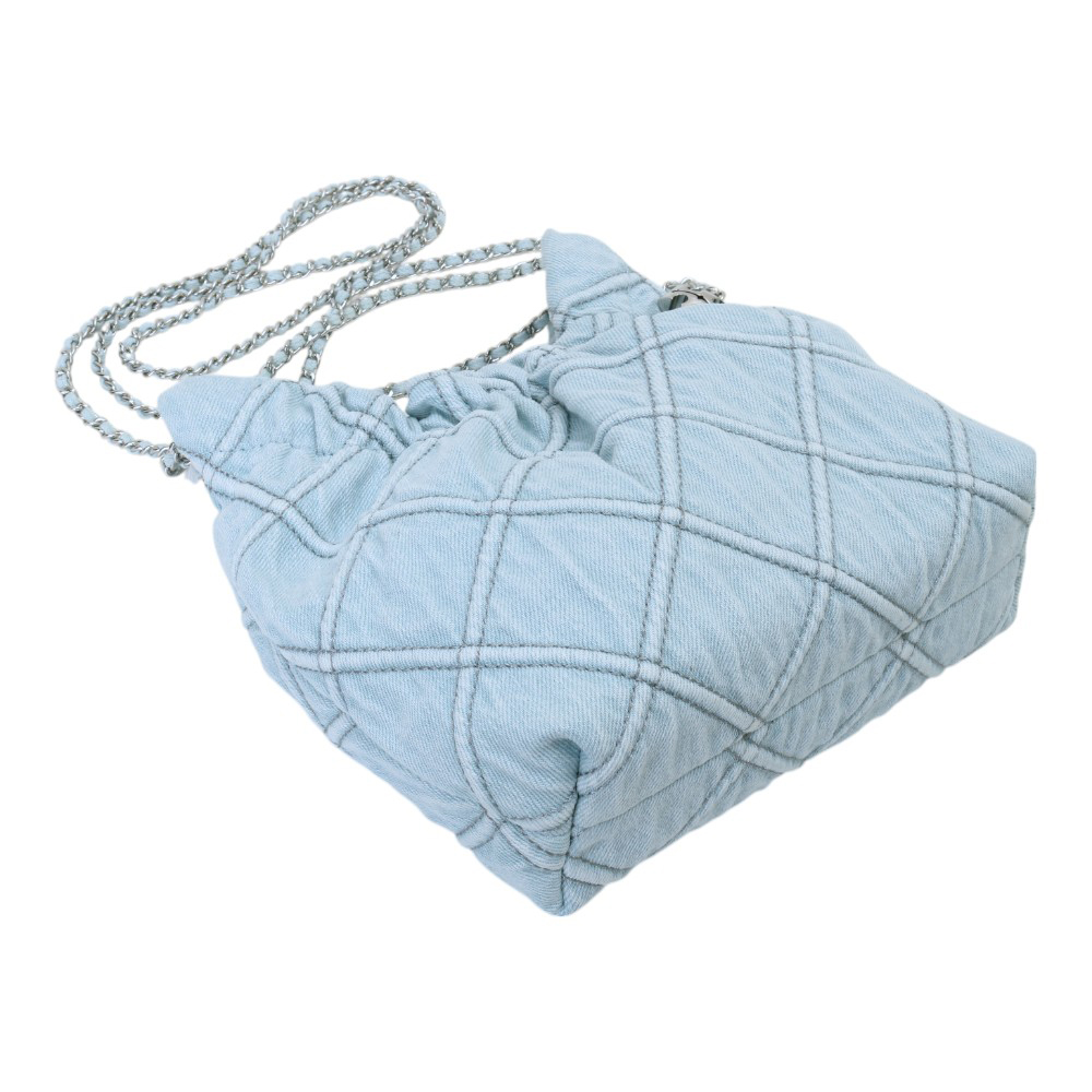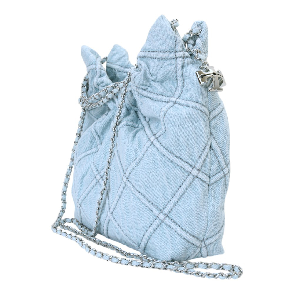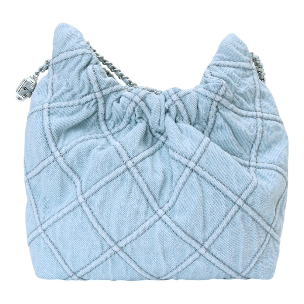 TORY BURCH-菱形紋丹寧布鍊帶拉束兩用包水藍S