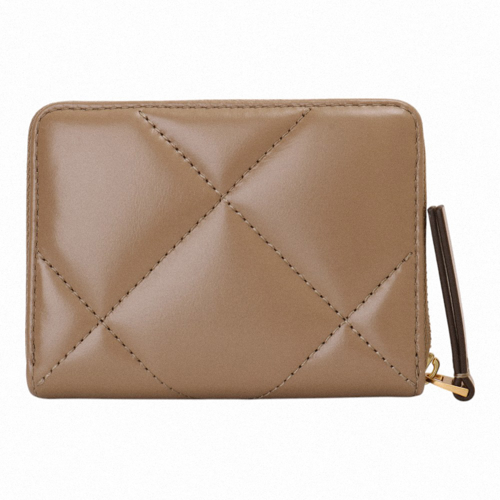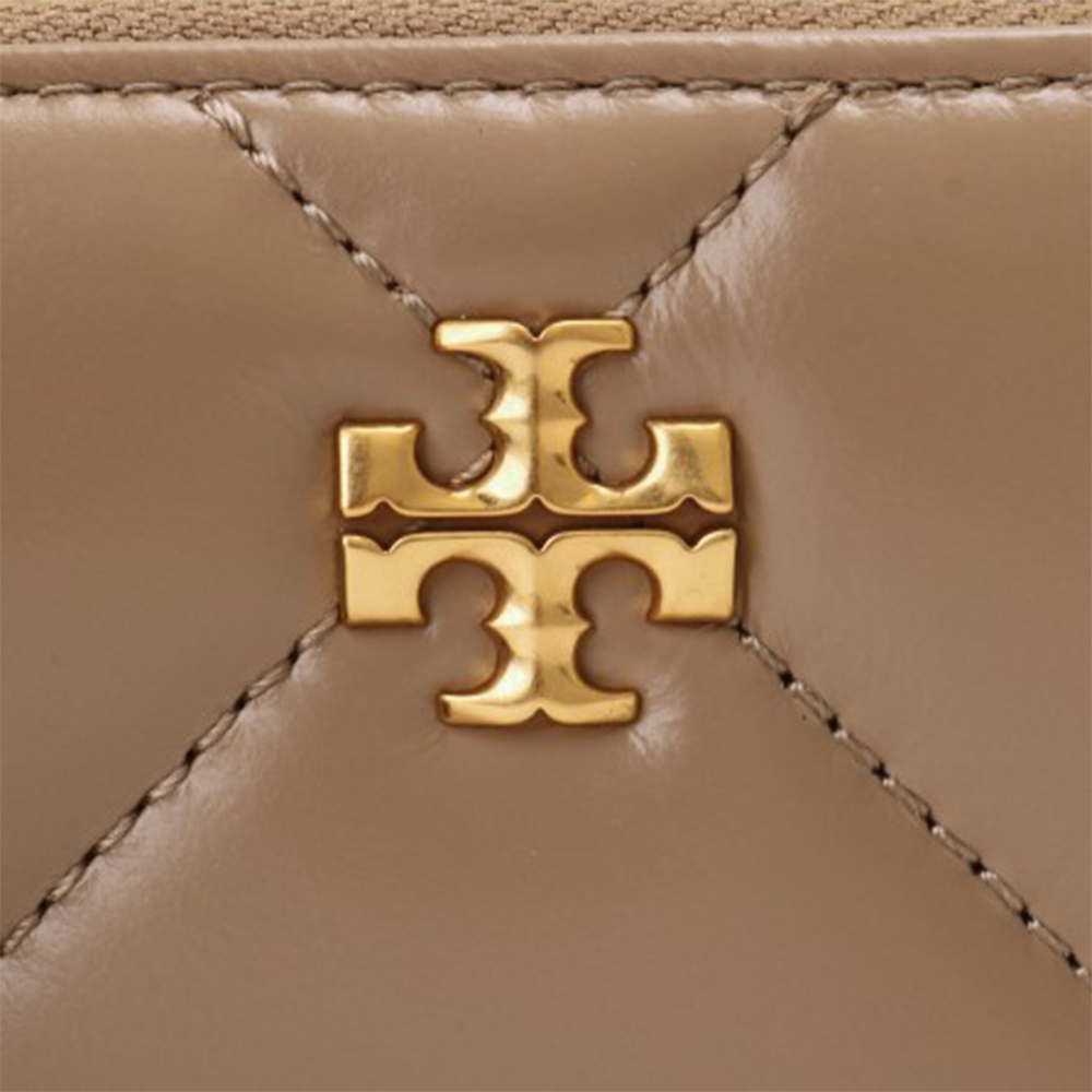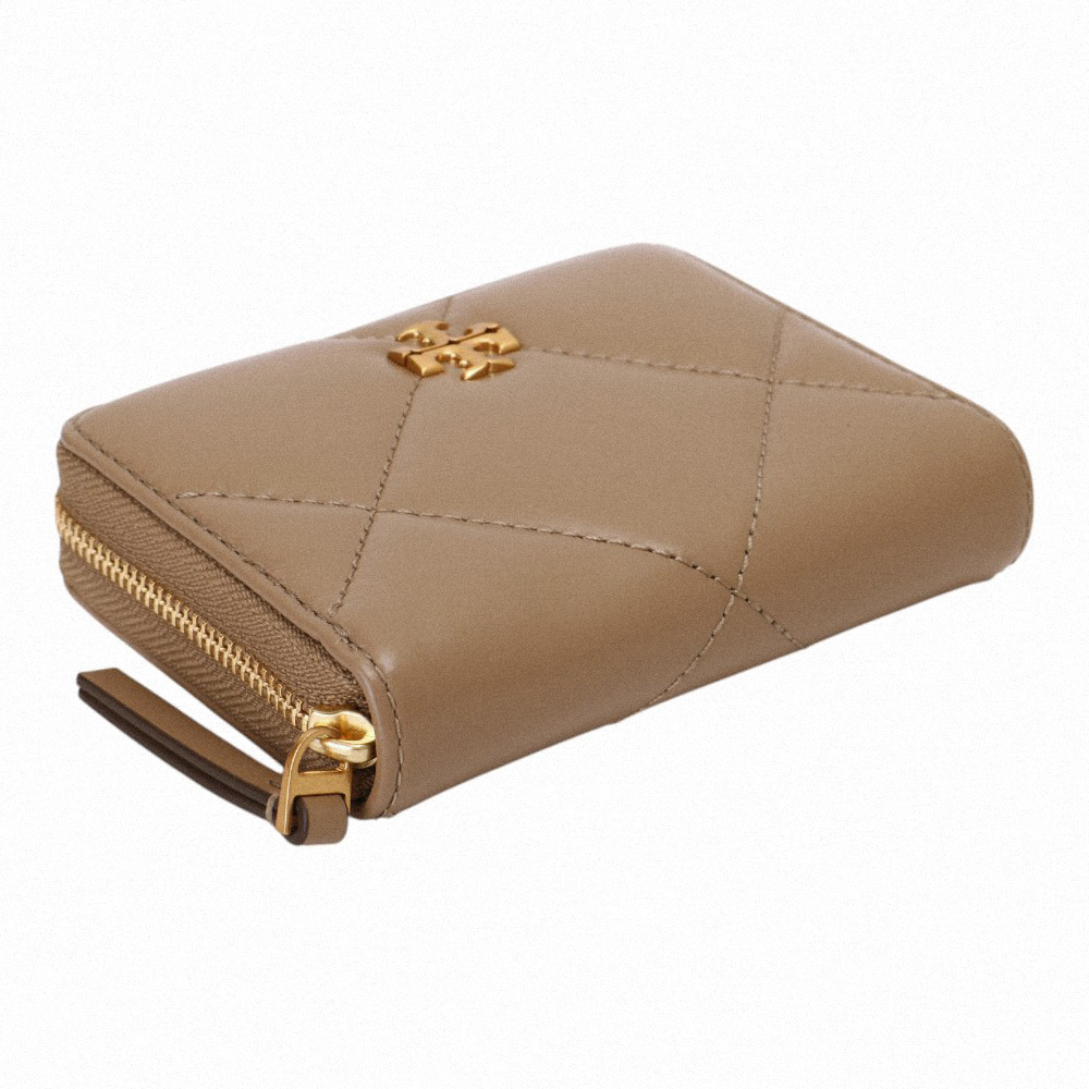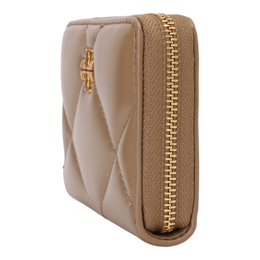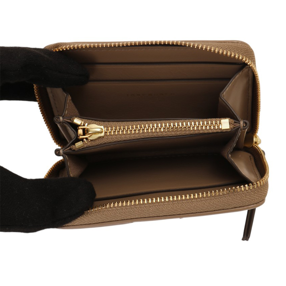TORY BURCH-金屬雙T 皮革ㄇ型拉鍊短夾奶茶色