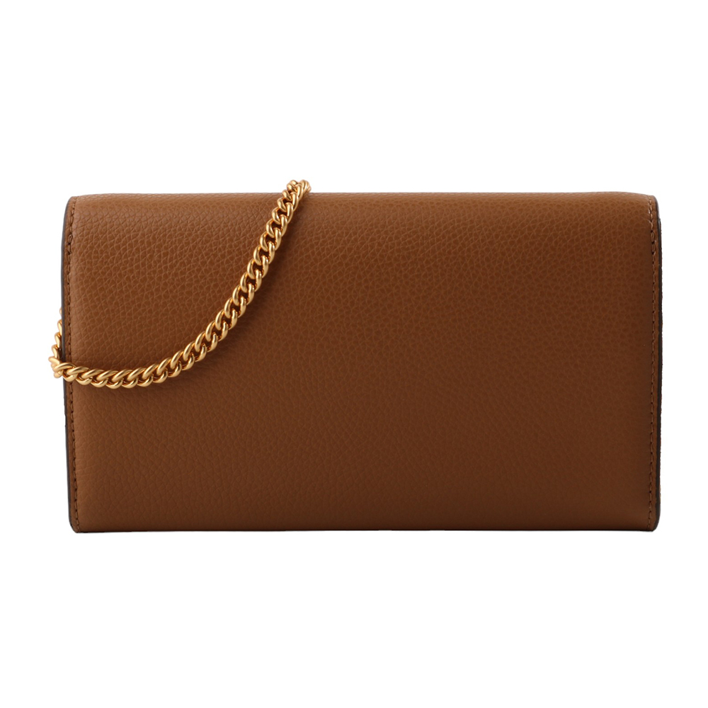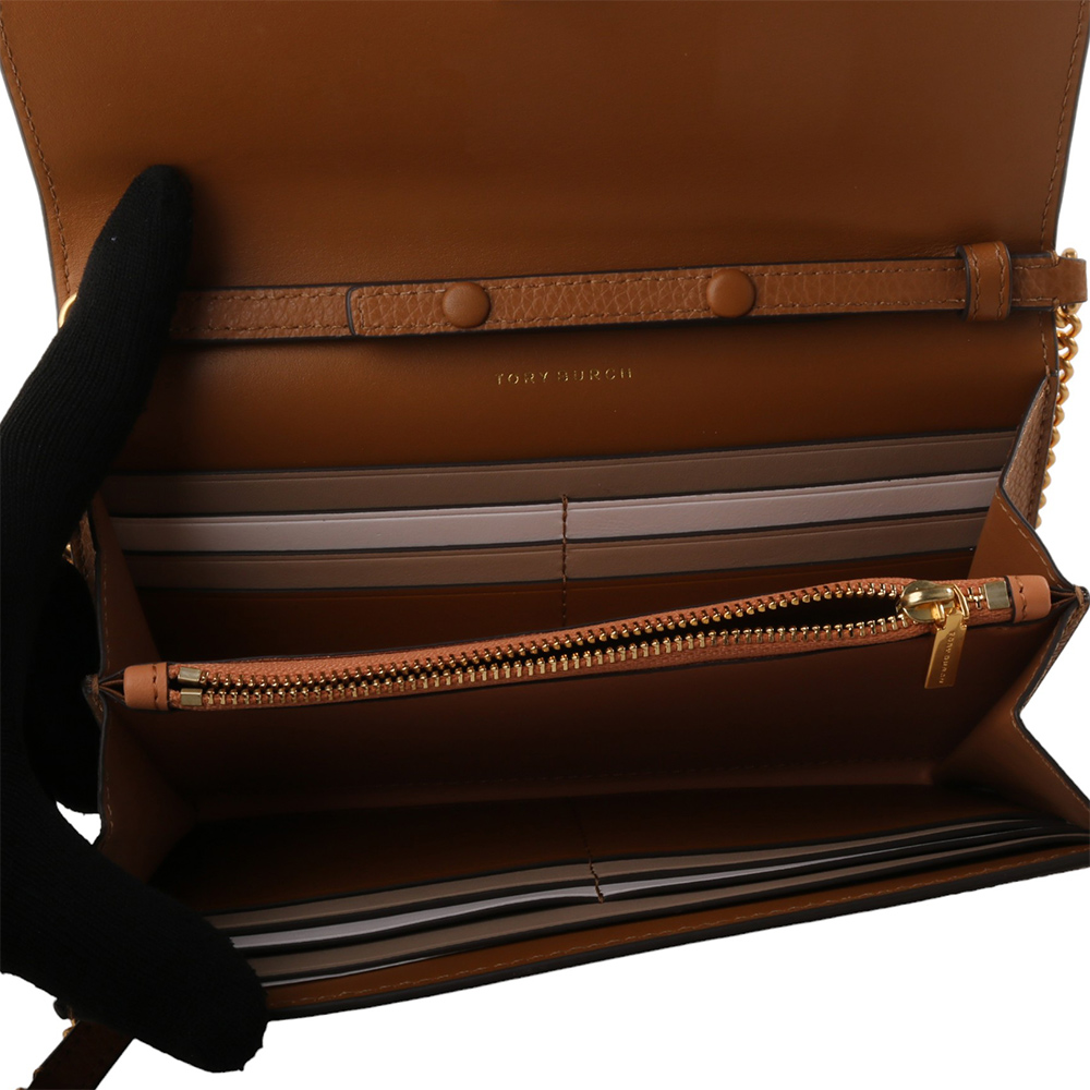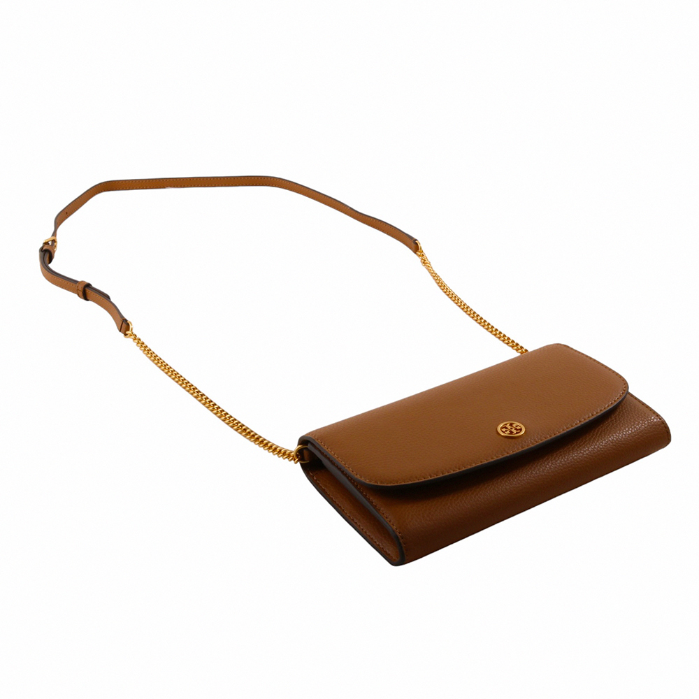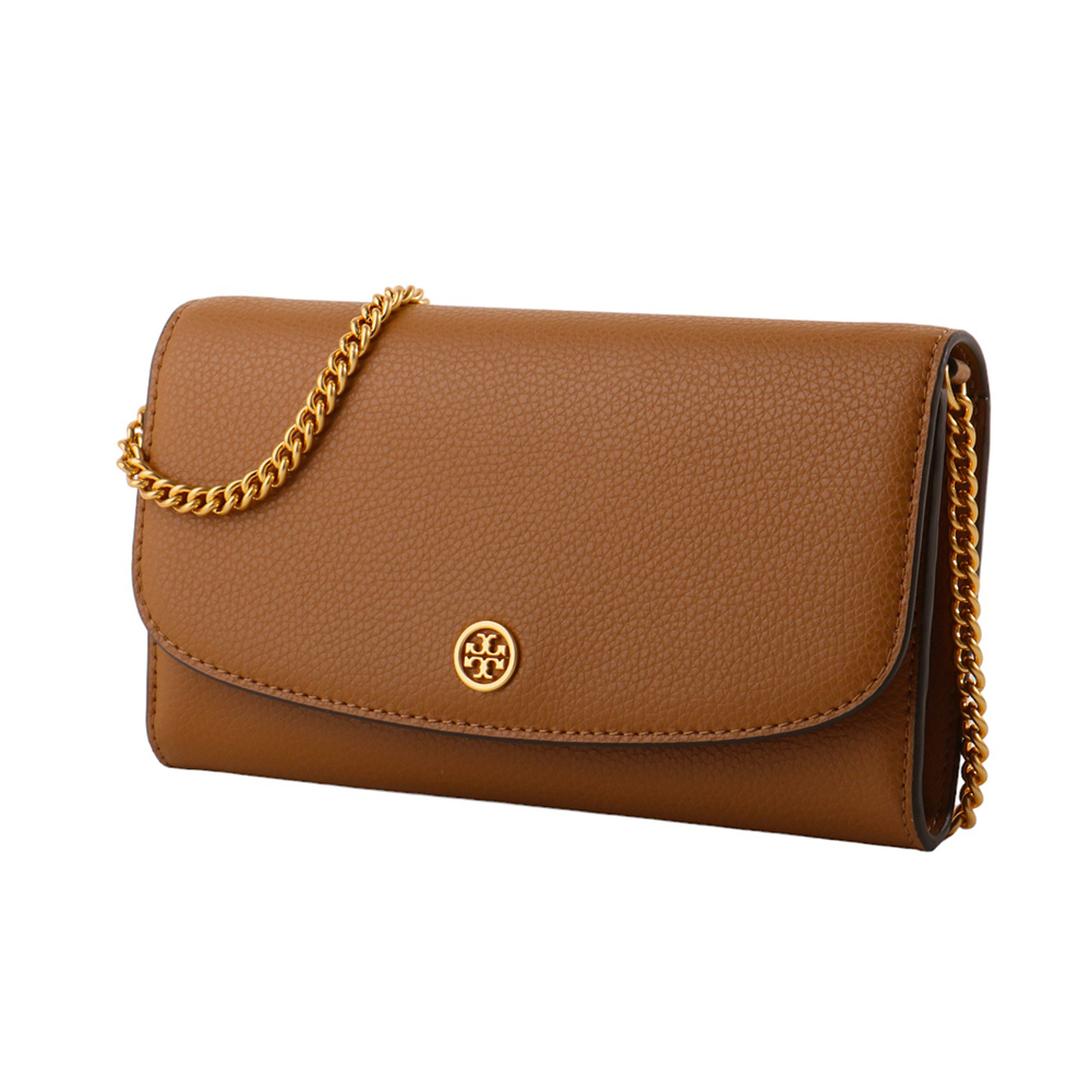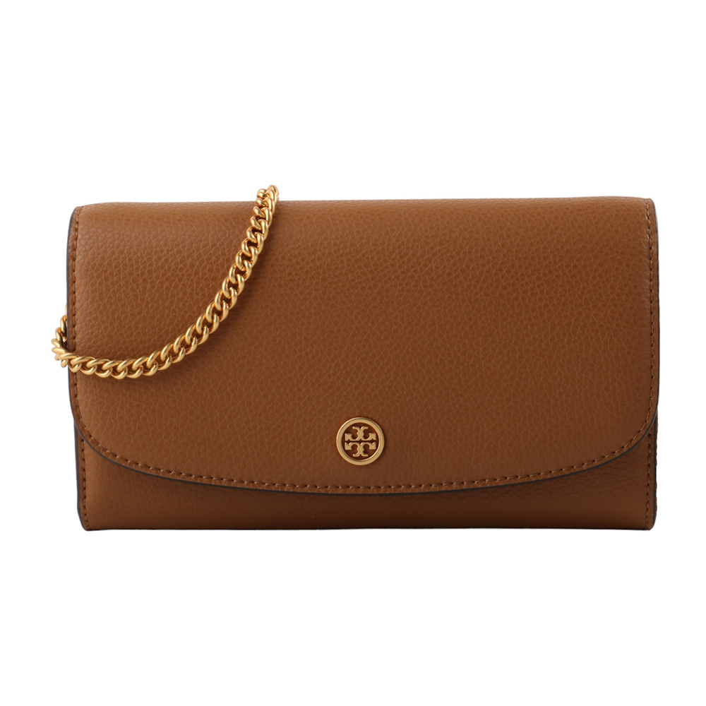 TORY BURCH-皮革鍊帶暗扣肩/斜背包駝
